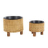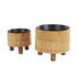 Set of 2 Brown Bamboo Wood Handmade Indoor Planter with Black Metal Interior