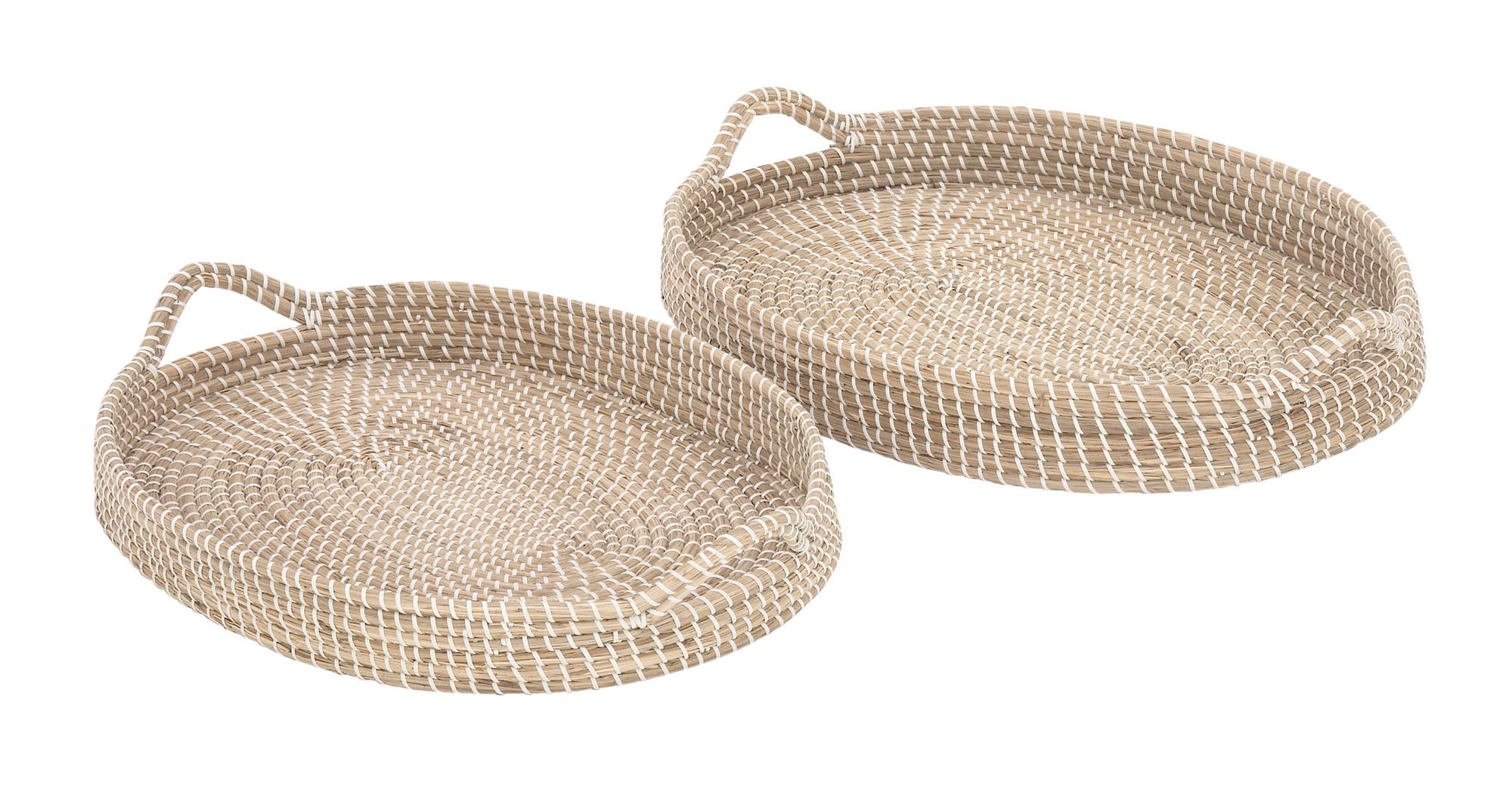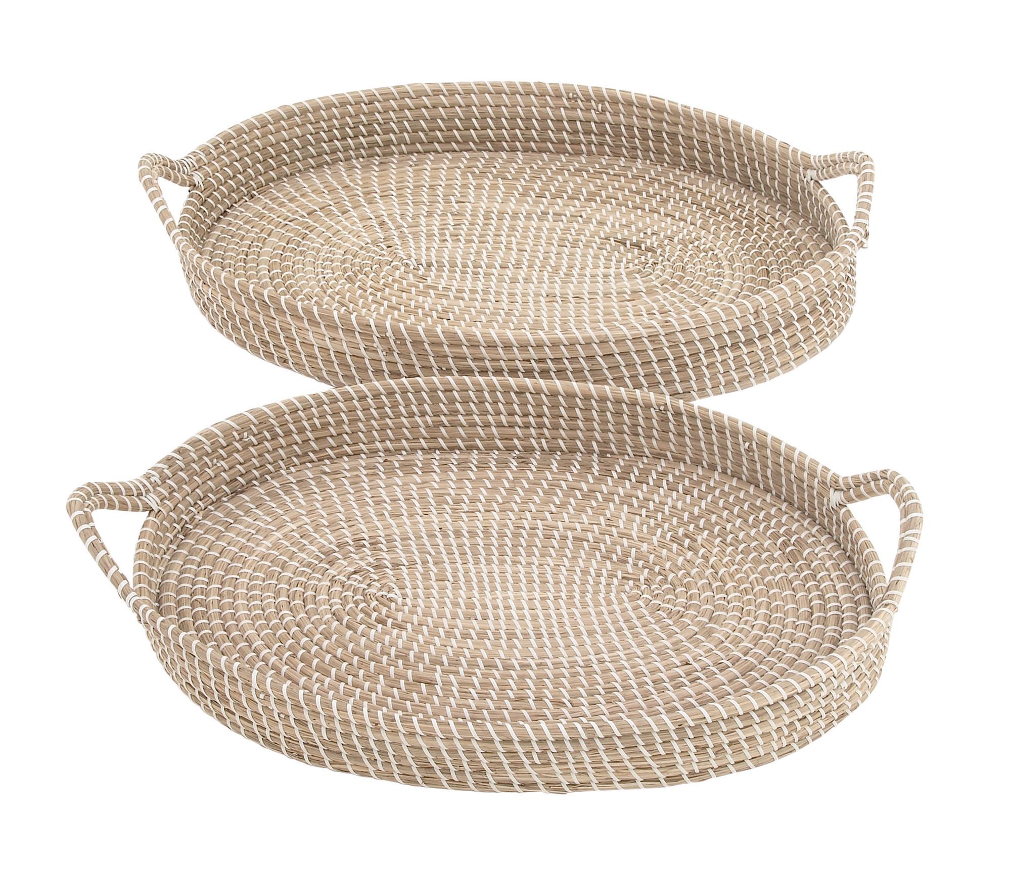 •Dried seagrass is intricately woven and sewn to make this bohemian set of 2 multi-purpose tray sturdy and stylish
