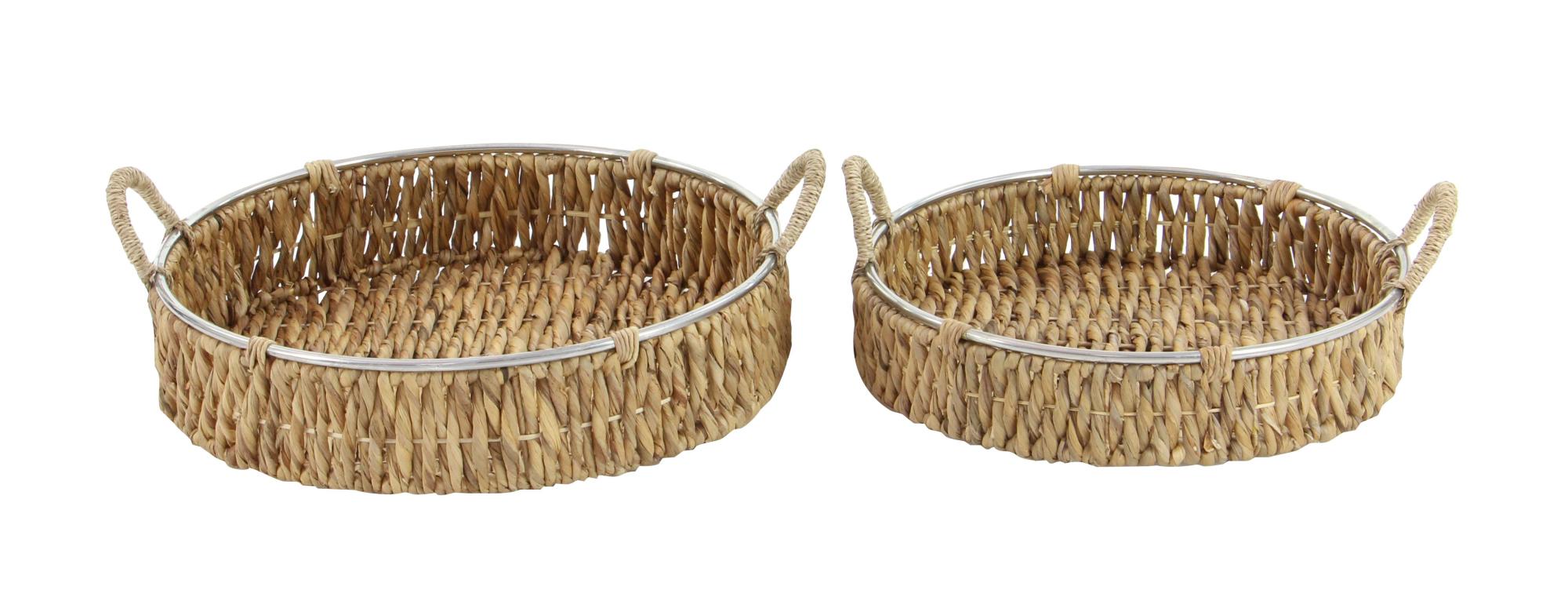 •Seagrass fiber is meticulously dried and intricately woven to form a round basket and attaching welded metal ring on top, making this coastal set of 2 multi-purpose tray sturdy and stylish