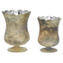•This rustic set of 2 hurricane candle holders for table features molded glass holders with flat bases that is given a distressed finish outside its interior