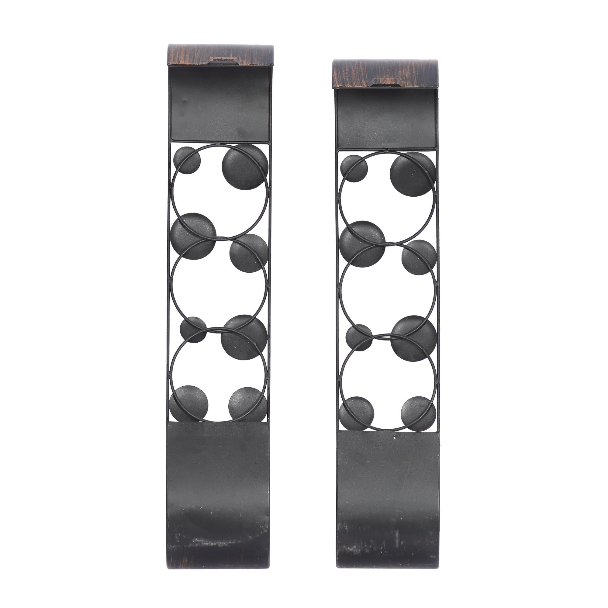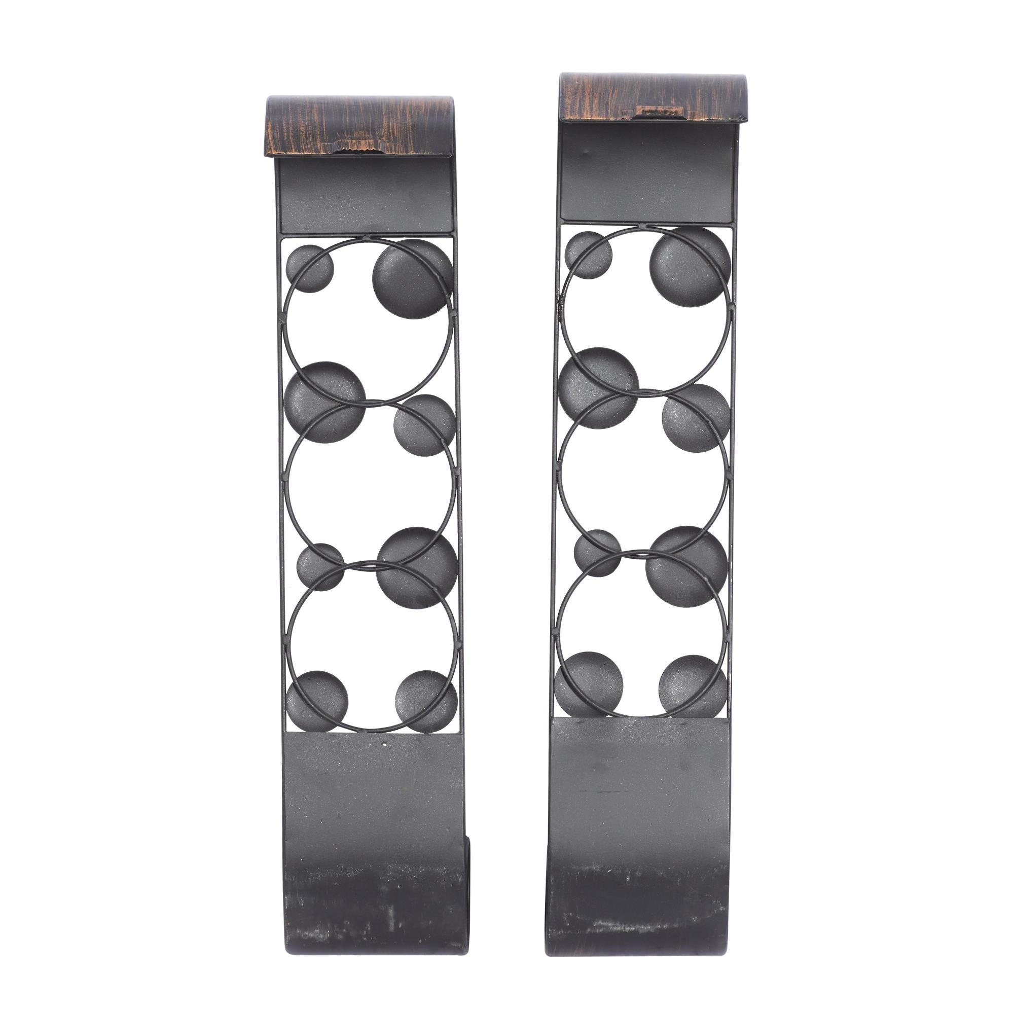 Style the set of 2 candle sconces on either side of a centerpiece or stagger them for ambient lighting in the living room or hallway. Can hold 2 pillar candles, not included. This item ships in 1 carton. Can be hung vertically using the sawtooths; nails and screws not included. Suitable for indoor use only. This item ships fully assembled in one piece. This metal candle sconce comes as a set of 2. Traditional style.
