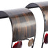 •These polished decorative wall sconces feature a slim rectangular shape with scrolled ends and brushed patterns, adorned with ring hoop patterns and accents