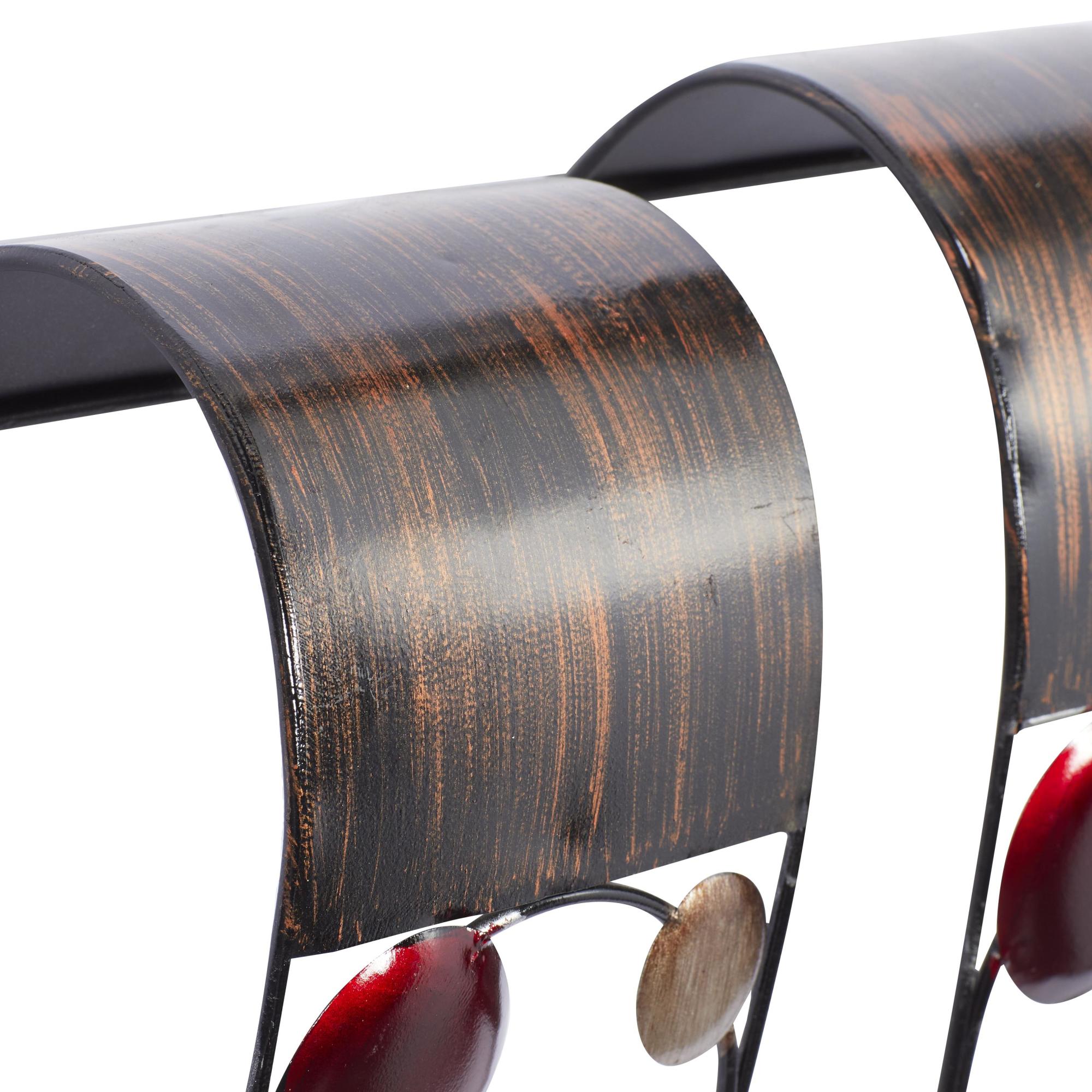 •This metal set of 2 wall sconces boasts a scroll-shaped figure with open and solid ring loop designs for a captivating display