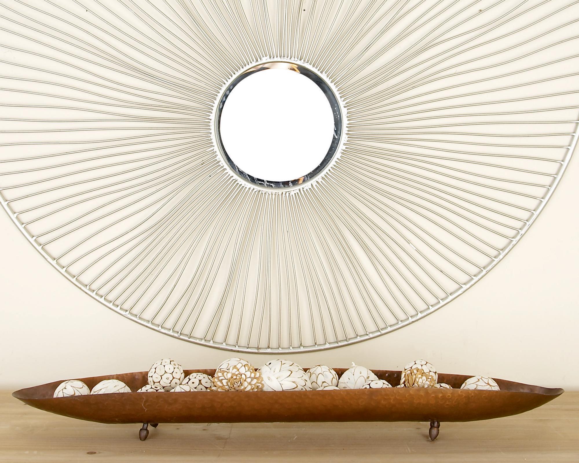 Place this set of 2 ottoman tray on your coffee table or console table to display decorative orbs for an inviting look. Designed with felt or rubber stoppers at the base that prevent scratching furniture and table tops, as well as sliding around. This item ships in 1 carton. Please note that this item is for decorative purposes only and is not food safe. Iron tray makes a great gift for any occasion. Suitable for indoor use only. This item ships fully assembled in one piece. Made in India. This iron ottoman tray comes as a set of 2. Traditional style.