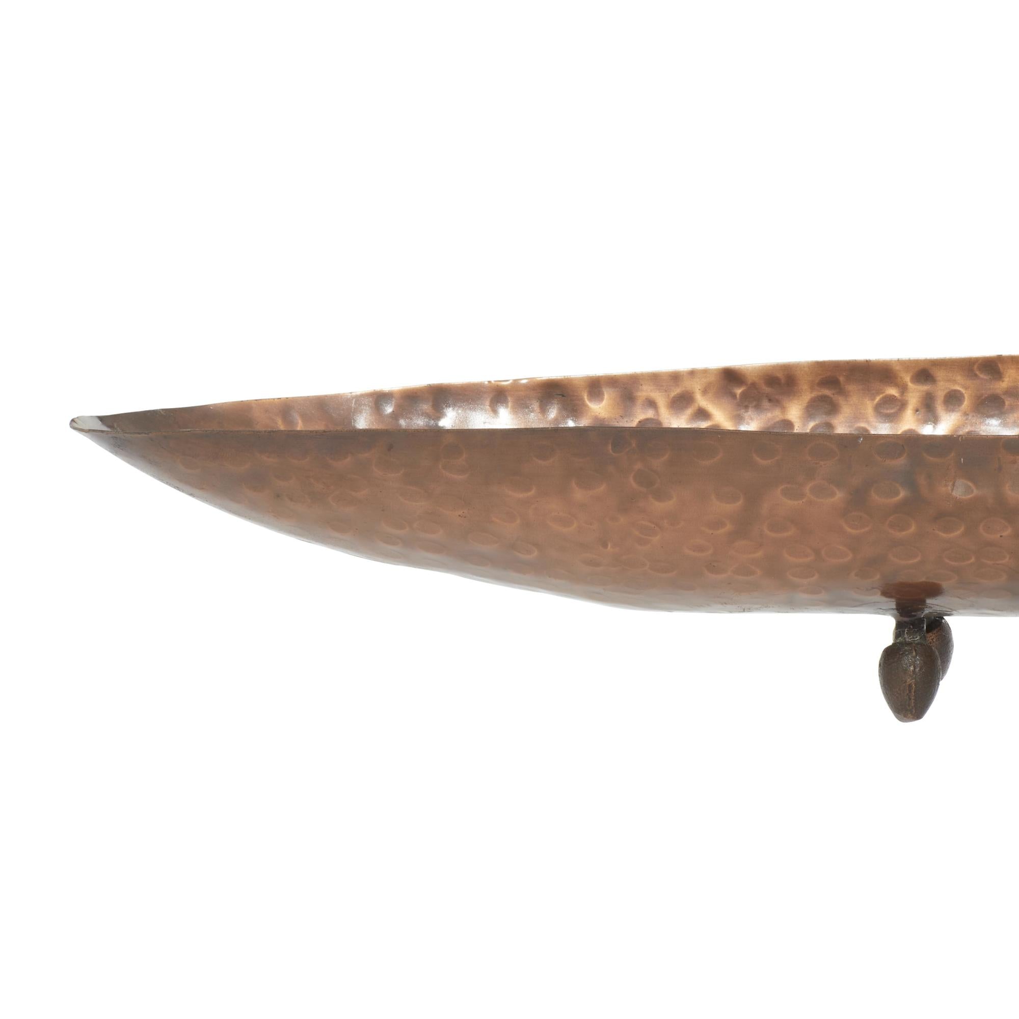 •Iron set of 2 trays features a slim and elongated shape with pointed ends, slightly concave center, and inverted teardrop leg stands for added sophistication