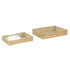 •The rattan set of 2 trays features a mirrored glass interior and woven rattan exterior, combining elegance and functionality