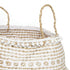 •The textured basket for home decor boasts round shapes with wide handles and tribal-inspired weaving patterns, offering both style and utility