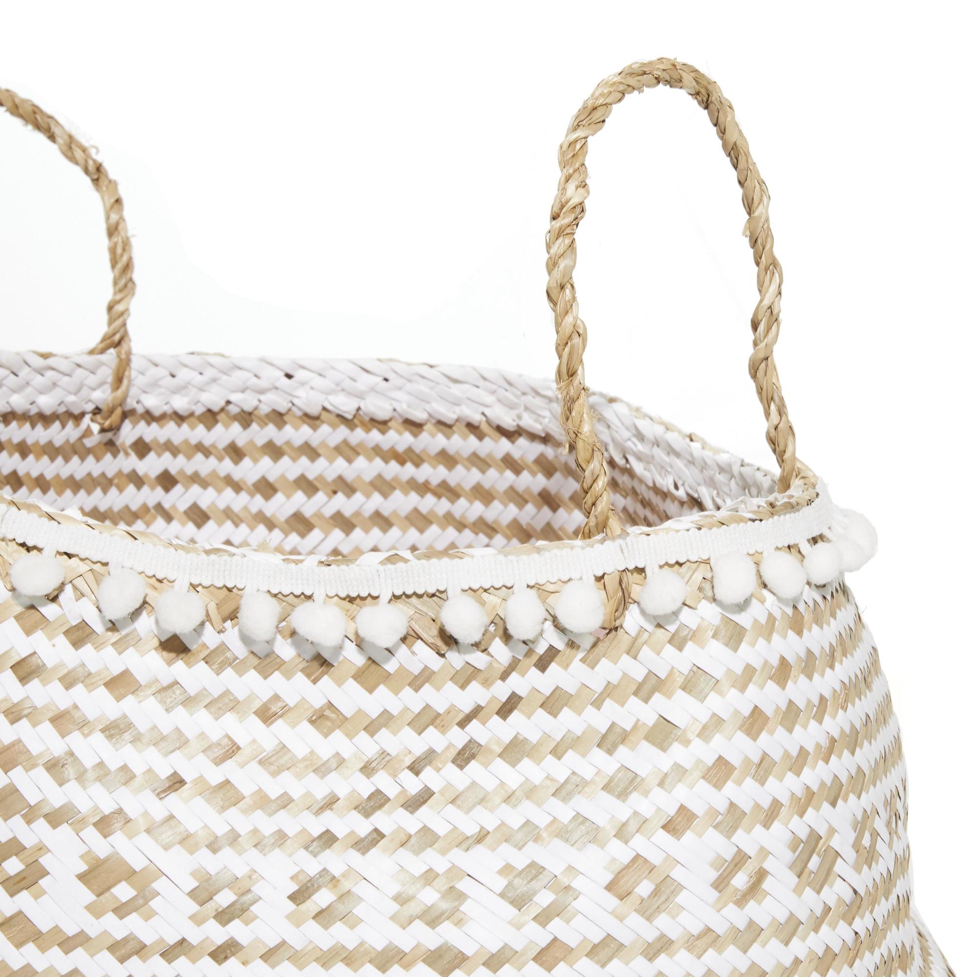•The bohemian set of 2 basket for decor features seagrass intricately woven with handles attached for easy carrying