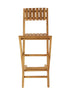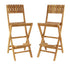 Set of 2 Brown Teak Wood Indoor Outdoor Slatted Folding Kitchen Bar Stool with Footrest