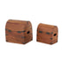 Set of 2 Brown Wood Handmade Arched Storage Chest Decorative Box with Black Metal Hardware