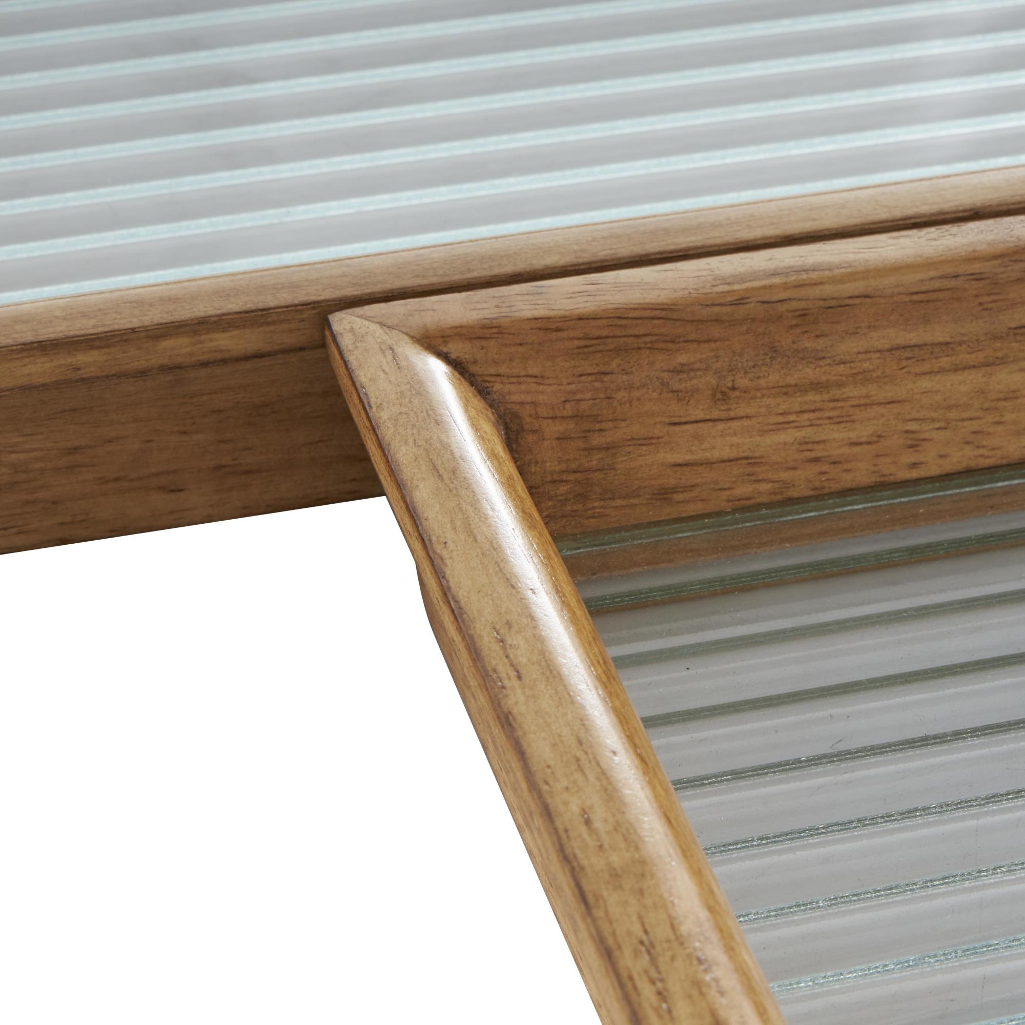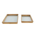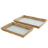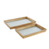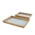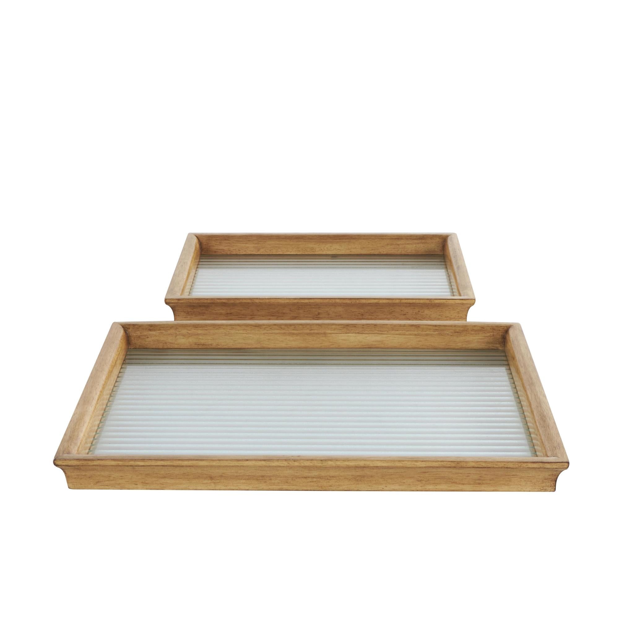 •The wood set of 2 trays stands out with its versatile nesting design for a space-saving storage, along with the unique fluted glass bases that provide a touch of elegance