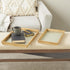 •The living room decor tray set is crafted from oak wood and tempered glass, ensuring durability and elegance