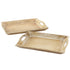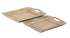 •Each MDF set of 2 trays features slightly flared rims and carved handles on each side to prevent items from sliding off