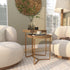 •With circular bead detailing around their edges and curved structure leg bases, these oiled living room tables epitomize the elegance of round design