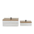 •This acrylic set of 2 boxes features a transparent design that allows visibility of the contents, while the wooden lids add a touch of natural appeal