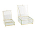 Set of 2 Clear Glass Beveled Decorative Jewelry Box with Gold Metal Frame and Chain Accent