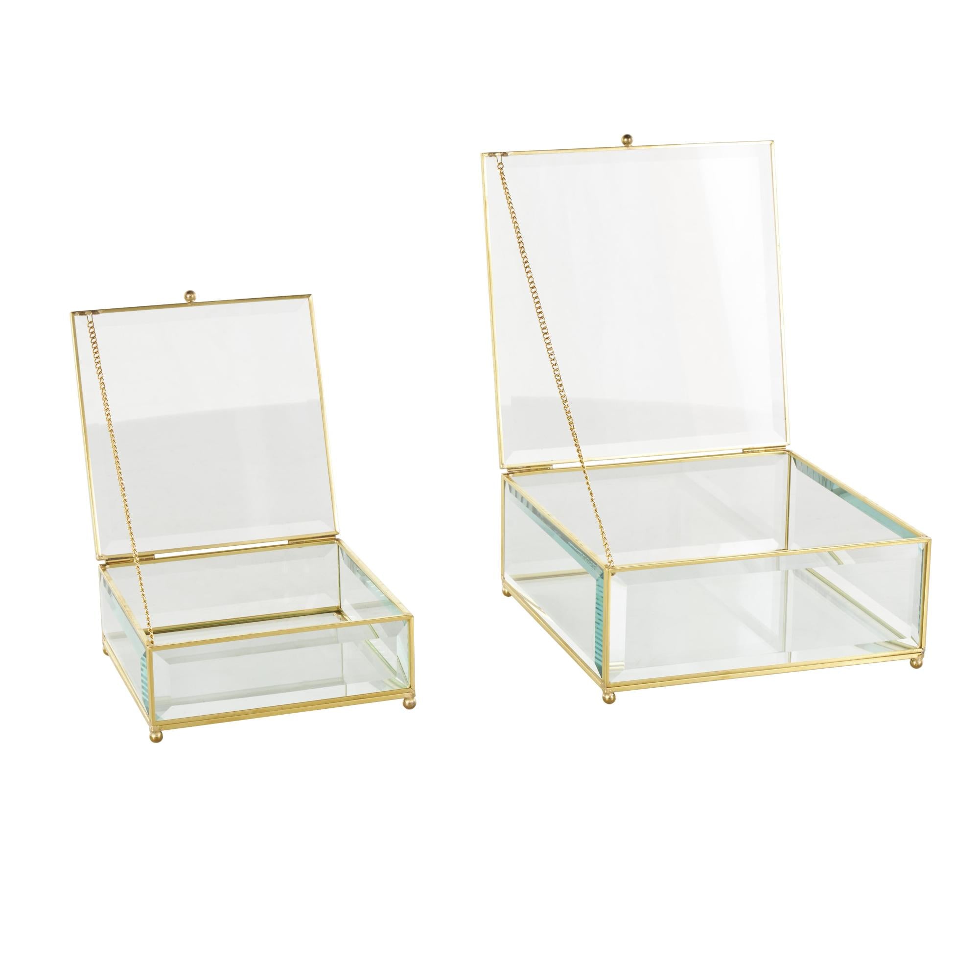 •Each glass jewelry box measures 8L x 8.25W x 3.6H , 6.05L x 6.3W x 2.6H inches, and collectively weighs 5.365 lbs