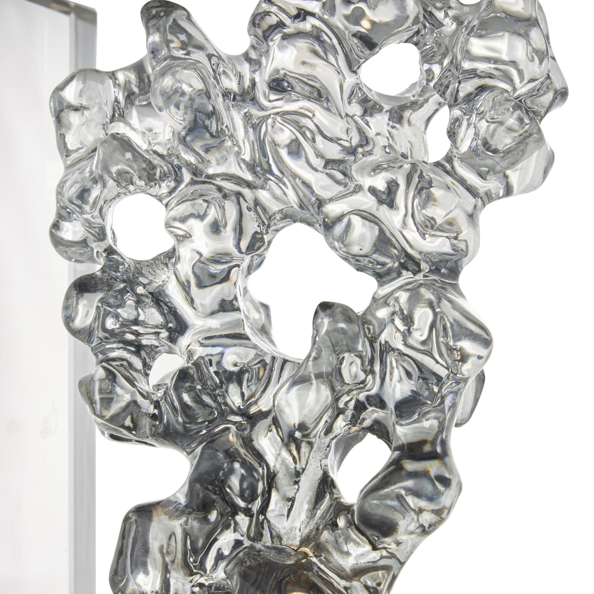 Set of 2 Coral Clear Glass Handmade Freeform Decorative Bookends with Clear Gold Supports