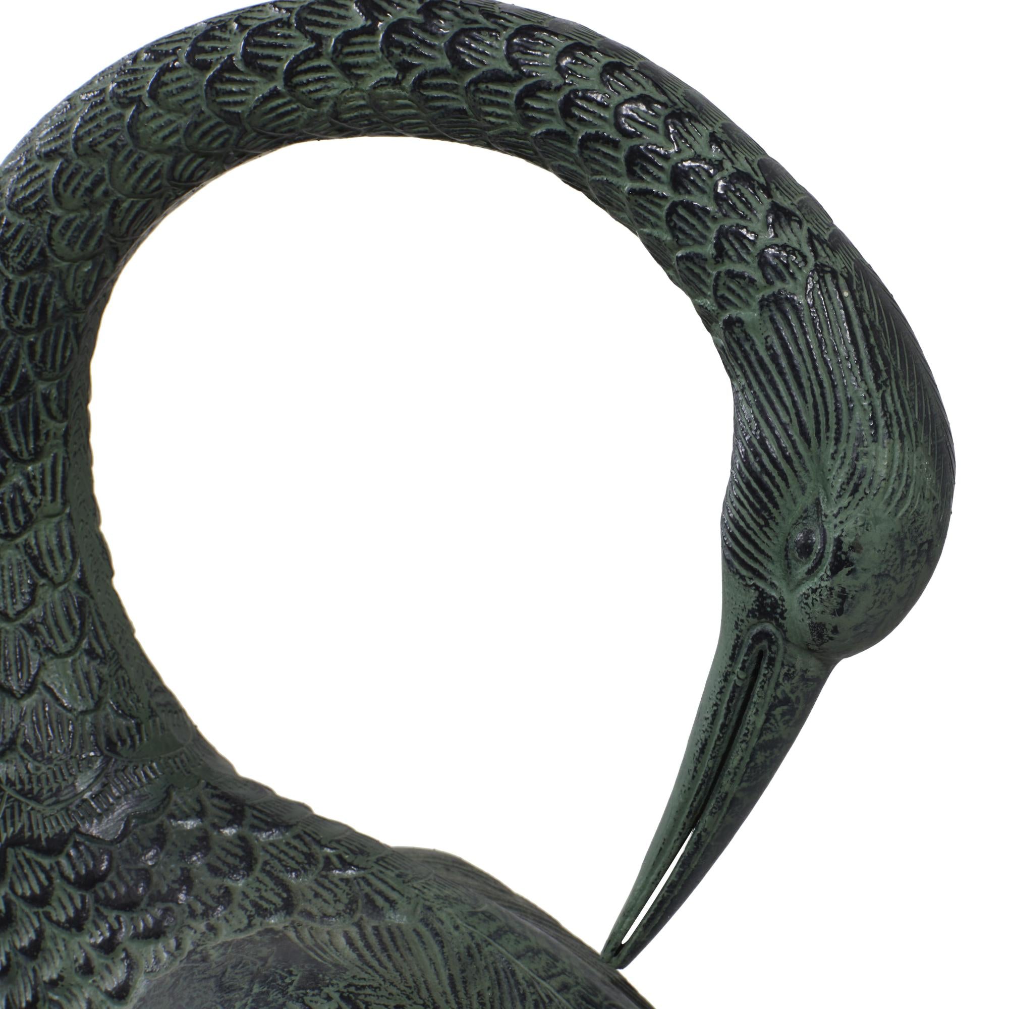 •These matte outdoor decorative sculptures take on the form of tall cranes with curved necks and textured detailing