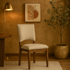 Set of 2 Cream Fabric Cutout Back Kitchen Dining Chair with Brown Wooden Legs