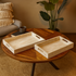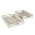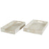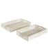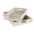 Set of 2 Cream Mango Wood Handmade Whitewashed Living Room Decor Tray with Carved Mandala Interior