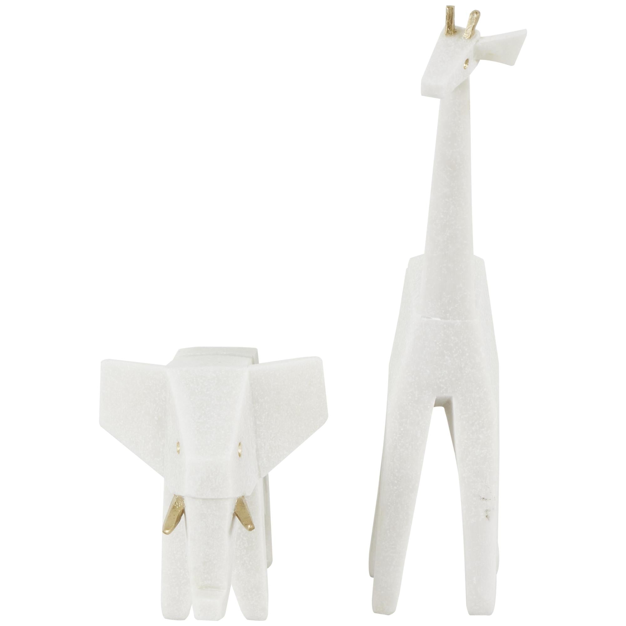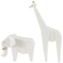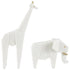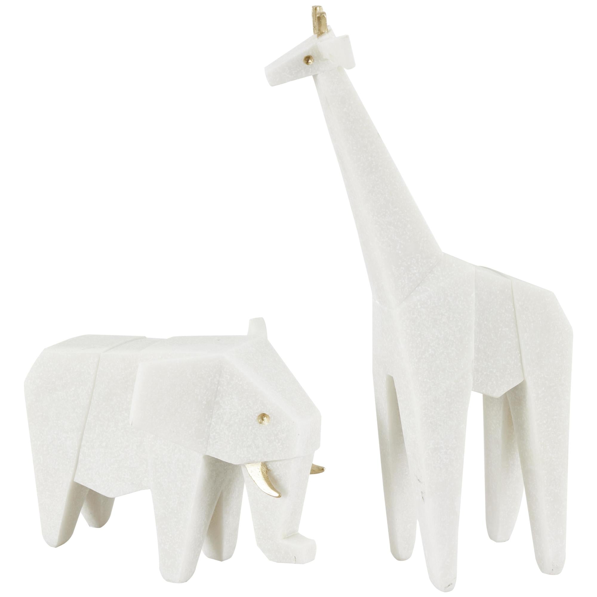 Set of 2 Elephant, Giraffe White Polystone Cubist Inspired Decorative Sculpture with Gold Accents