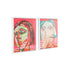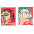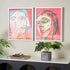 Set of 2 Face Pink Canvas Living Room Framed Wall Art with Teal and Black Accents