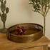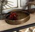 •The traditional set of 2 multipurpose tray is meticulously constructed with aluminum molded to form its round shape and intricate patterns, with handles attached at the sides