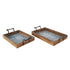 Set of 2 Floral Brown Wood Living Room Decor Tray with Tile Patterns