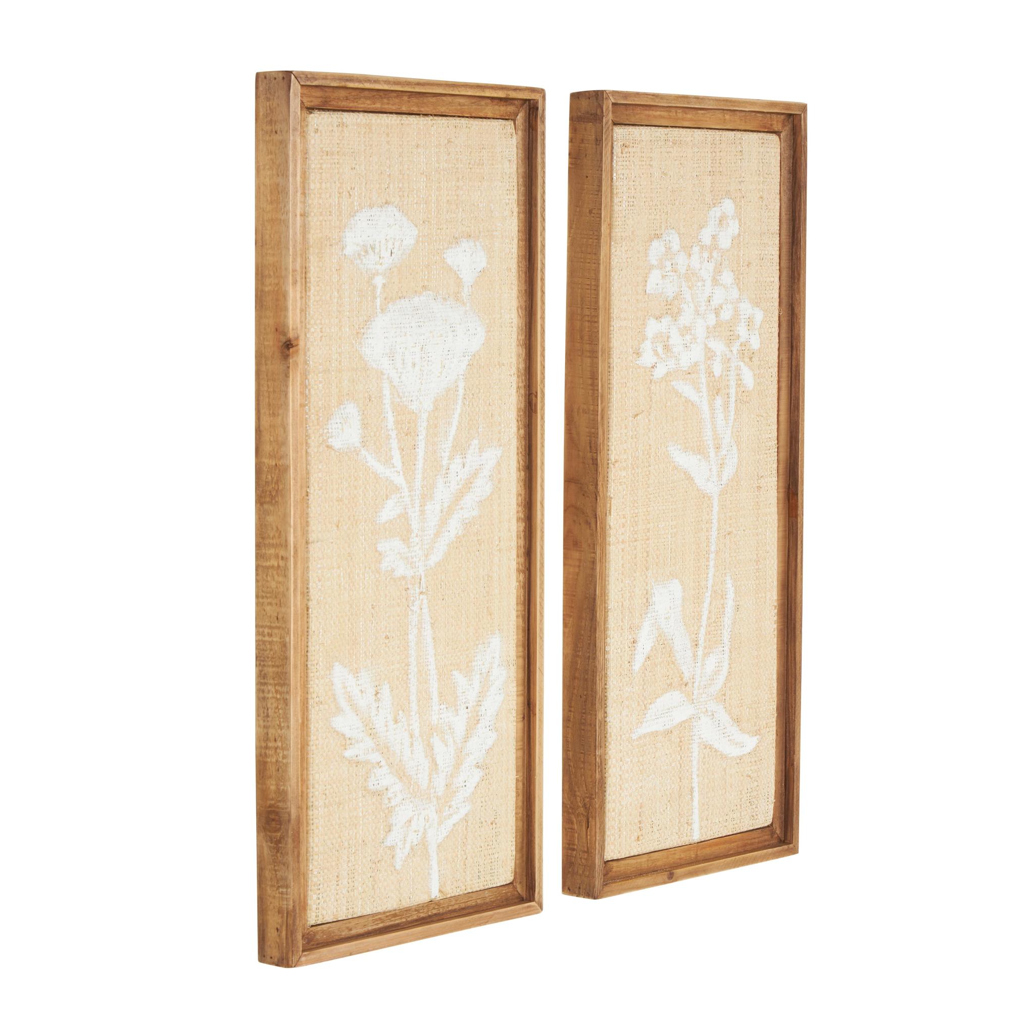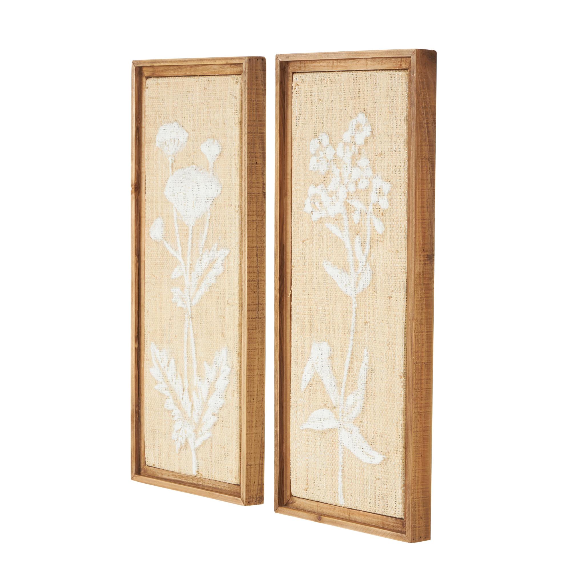 Set of 2 Floral Cream Wood Textured Living Room Framed Wall Art with White Painted Accents