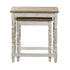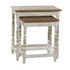 Bring a finishing touch to your home with an inviting appeal with this beautifully crafted accent table. A compact friendly table providing you with additional surface storage space any where in your home. To infuse your space with rustic charm, place the floral set of 2 end table near your upholstered sofa or bed. This item ships in 1 carton. Nesting tables can be used together or separate. Due to the handmade nature of this item, no two will be alike, there will be slight differences in shape, size, and color. Suitable for indoor use only. This item ships fully assembled in one piece. Maximum weight limit is 100 lbs. Made in India. This mango wood end table comes as a set of 2. Eclectic style.
