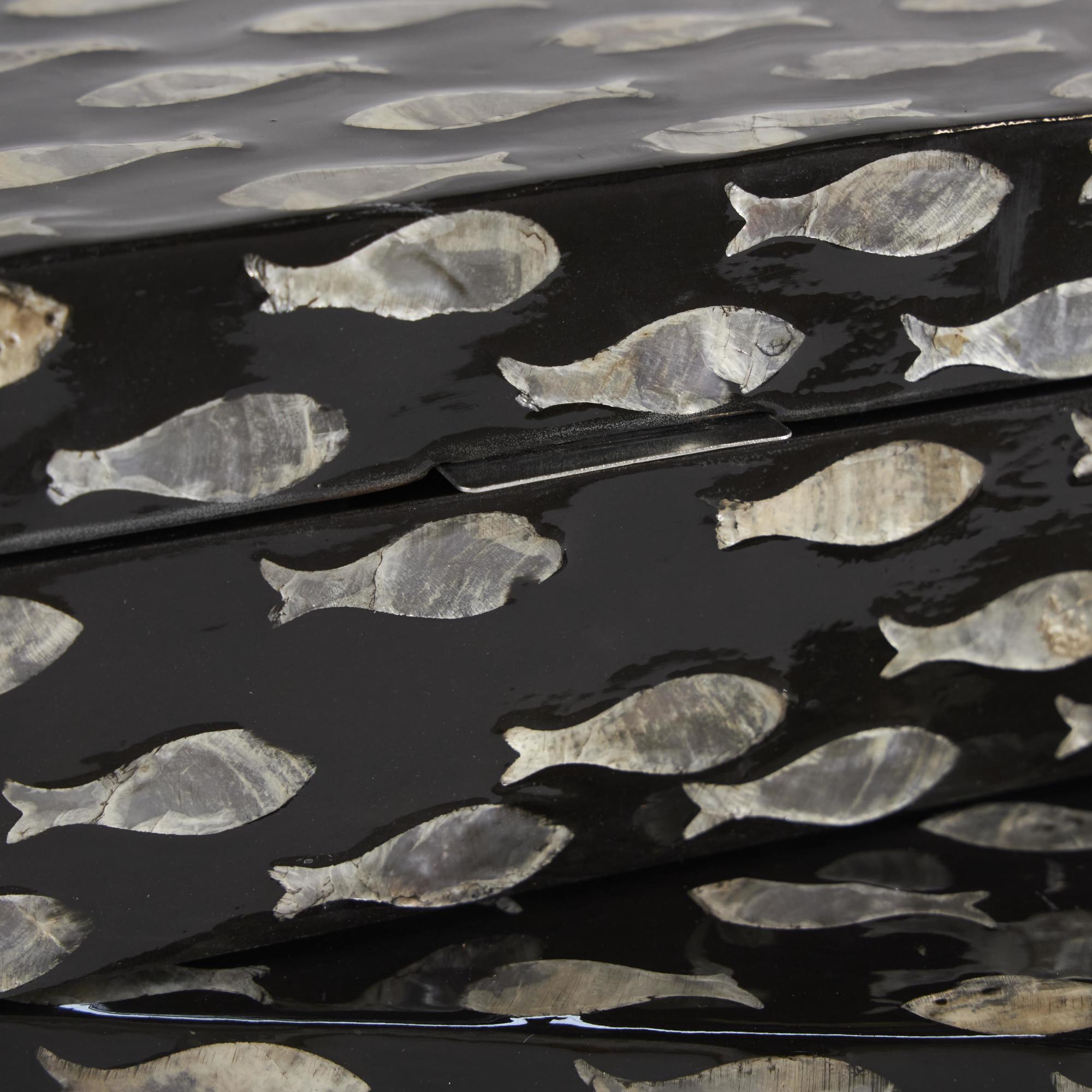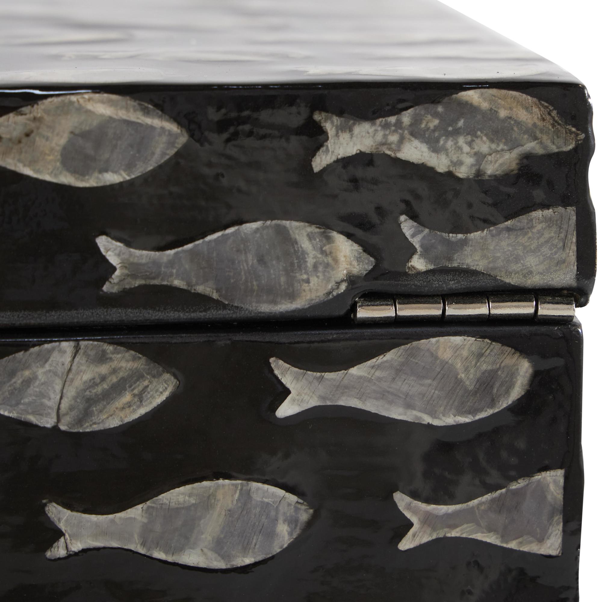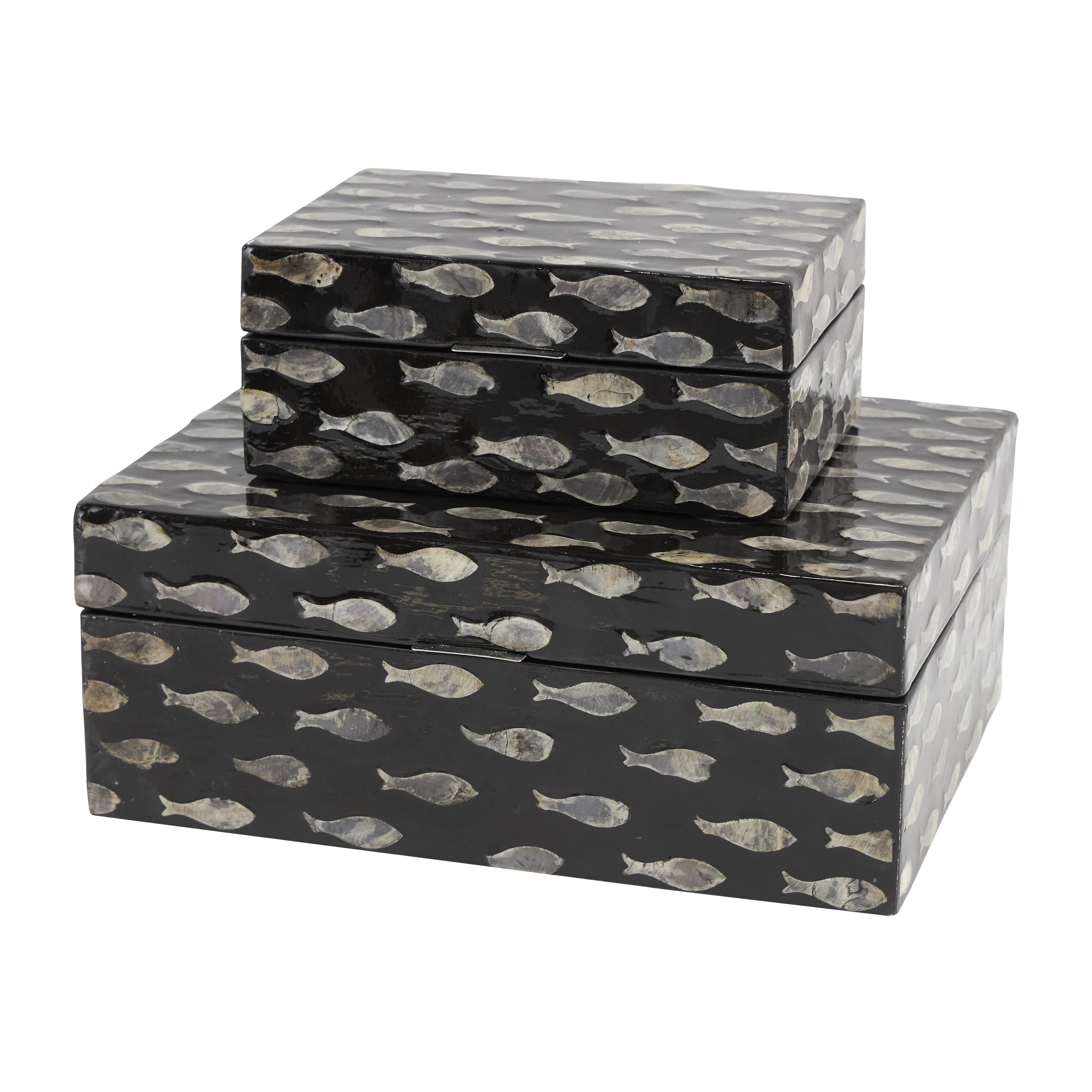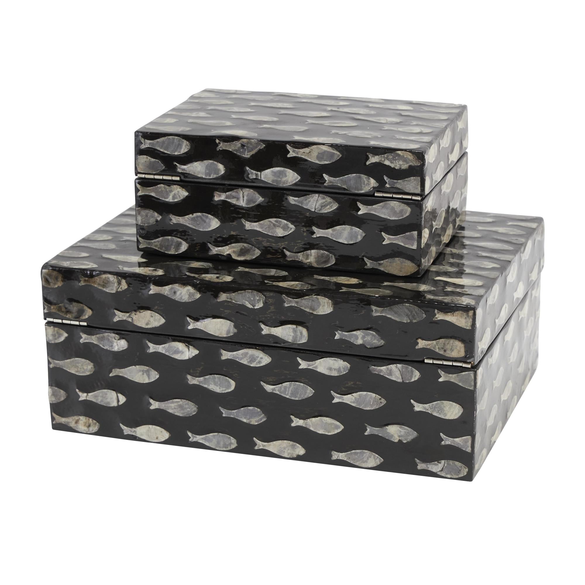 •Coastal set of 2 keepsake boxes is crafted with a sturdy wooden MDF frame overlaid with mother of pearl for added durability