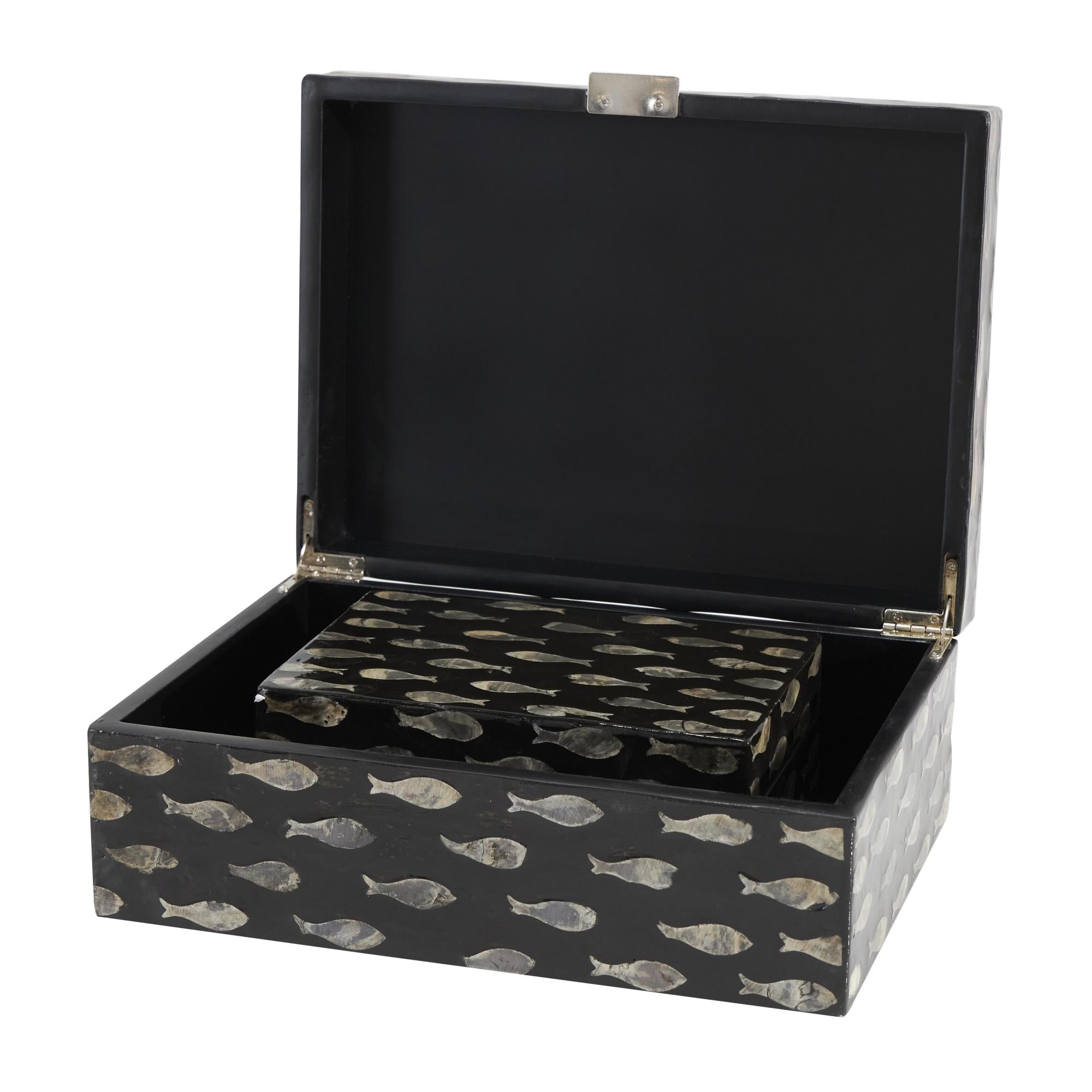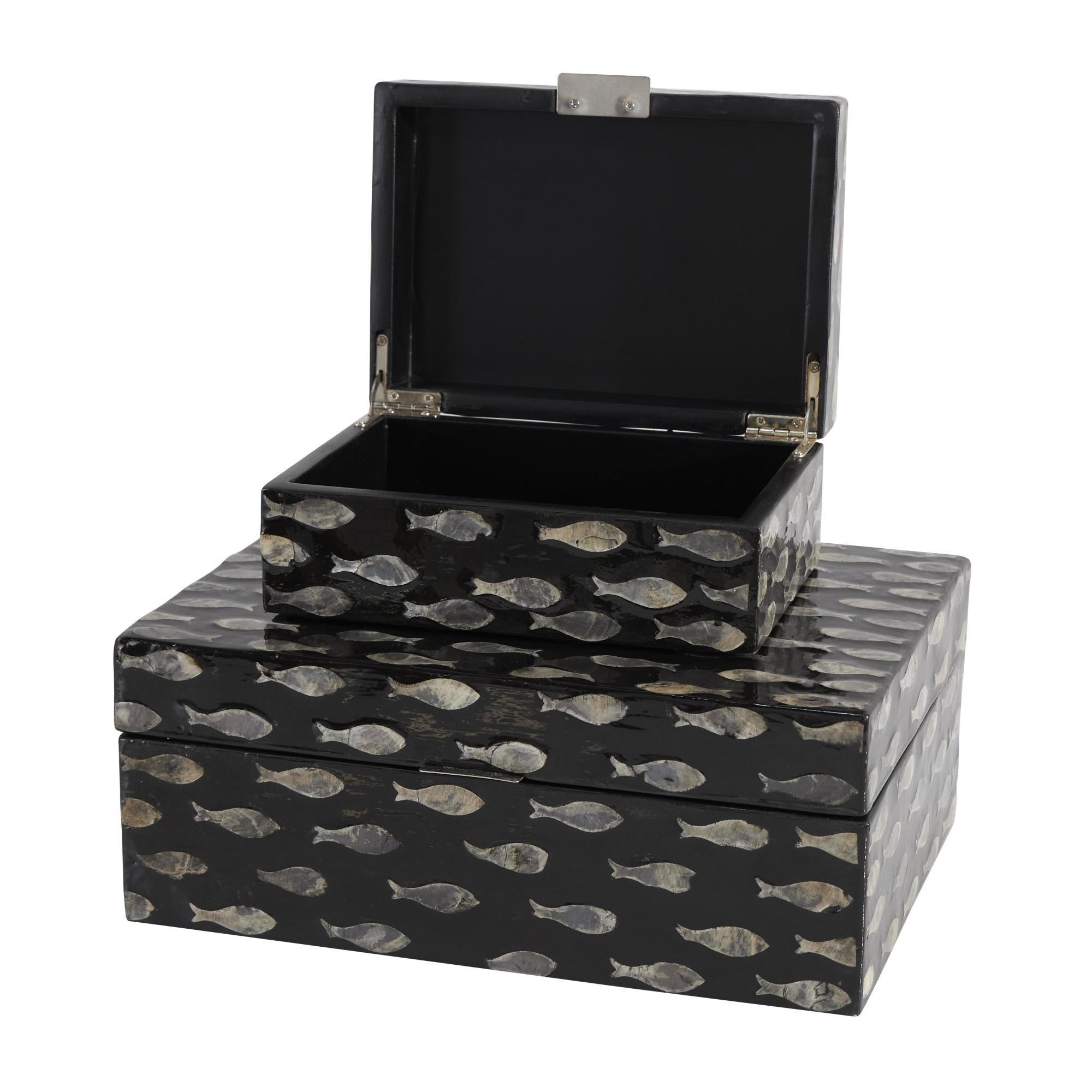 With their intricate detailing and unique construction, this set of 2 decorative keepsake boxes can bring an air of elegance to living rooms, bedrooms or offices. Designed with felt or rubber stoppers at the base that prevent scratching furniture and table tops, as well as sliding around. This item ships in 1 carton. Mother of pearl box makes a great gift for any occasion. Suitable for indoor use only. This item ships fully assembled in one piece. Made in Vietnam. This mother of pearl decorative keepsake box comes as a set of 2. Coastal style.