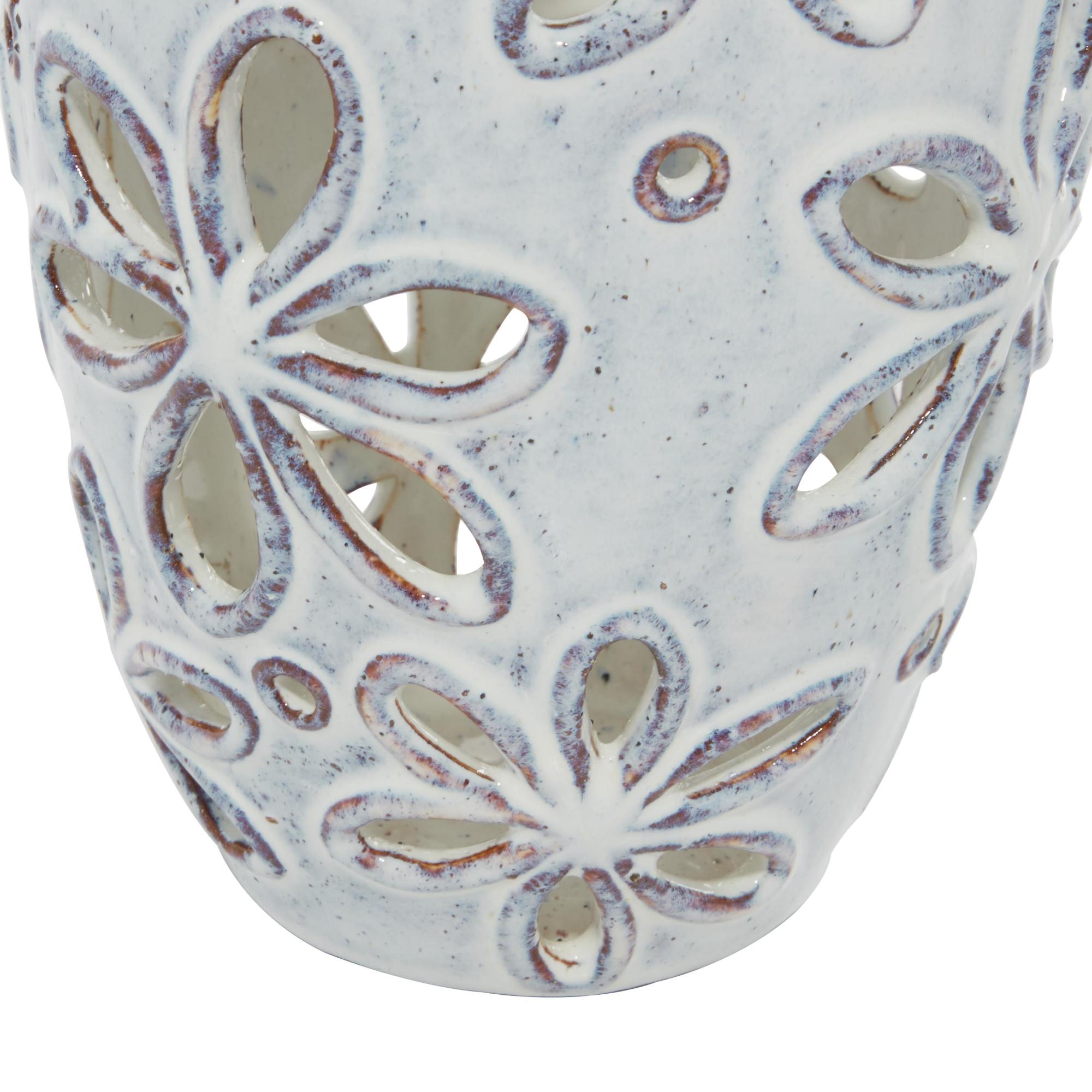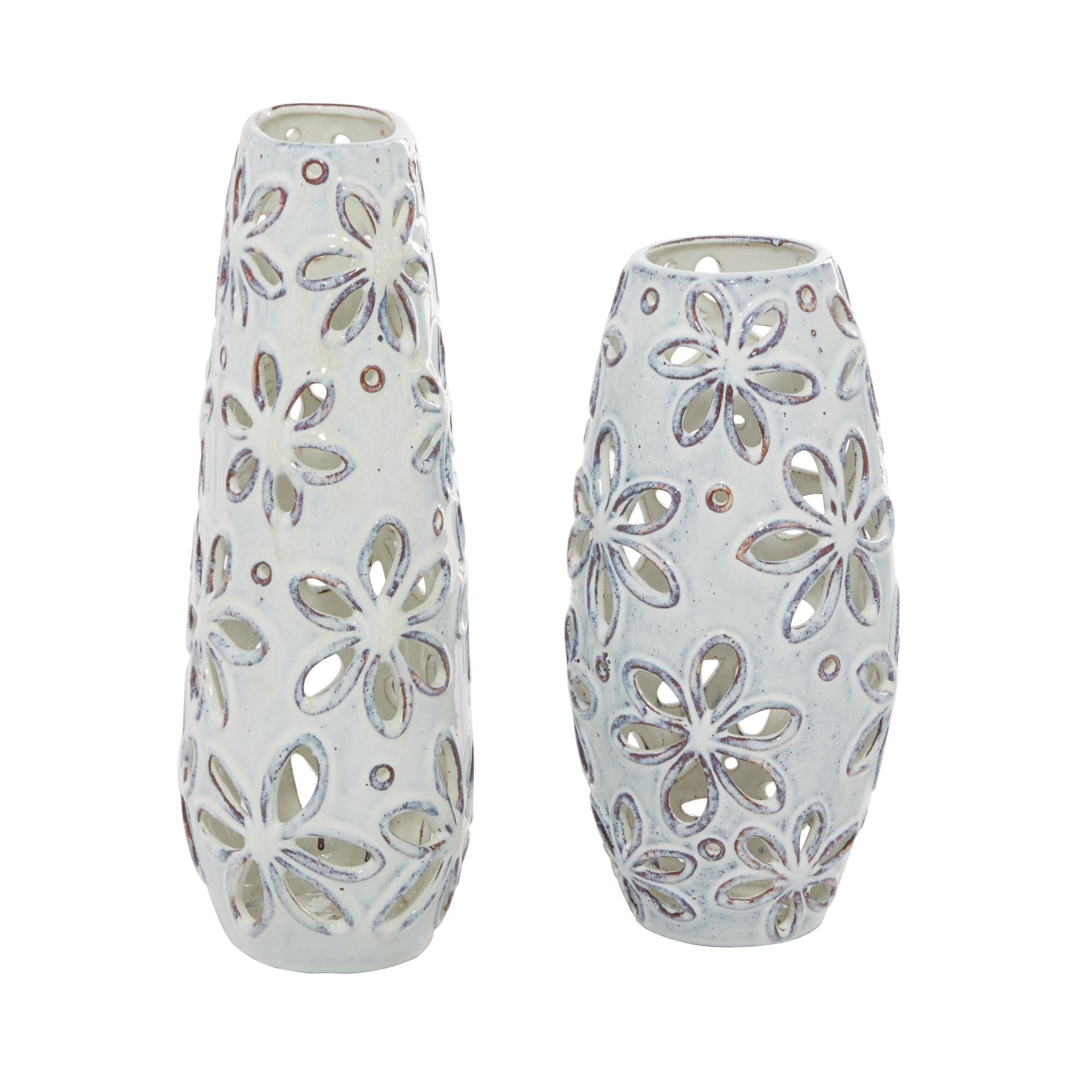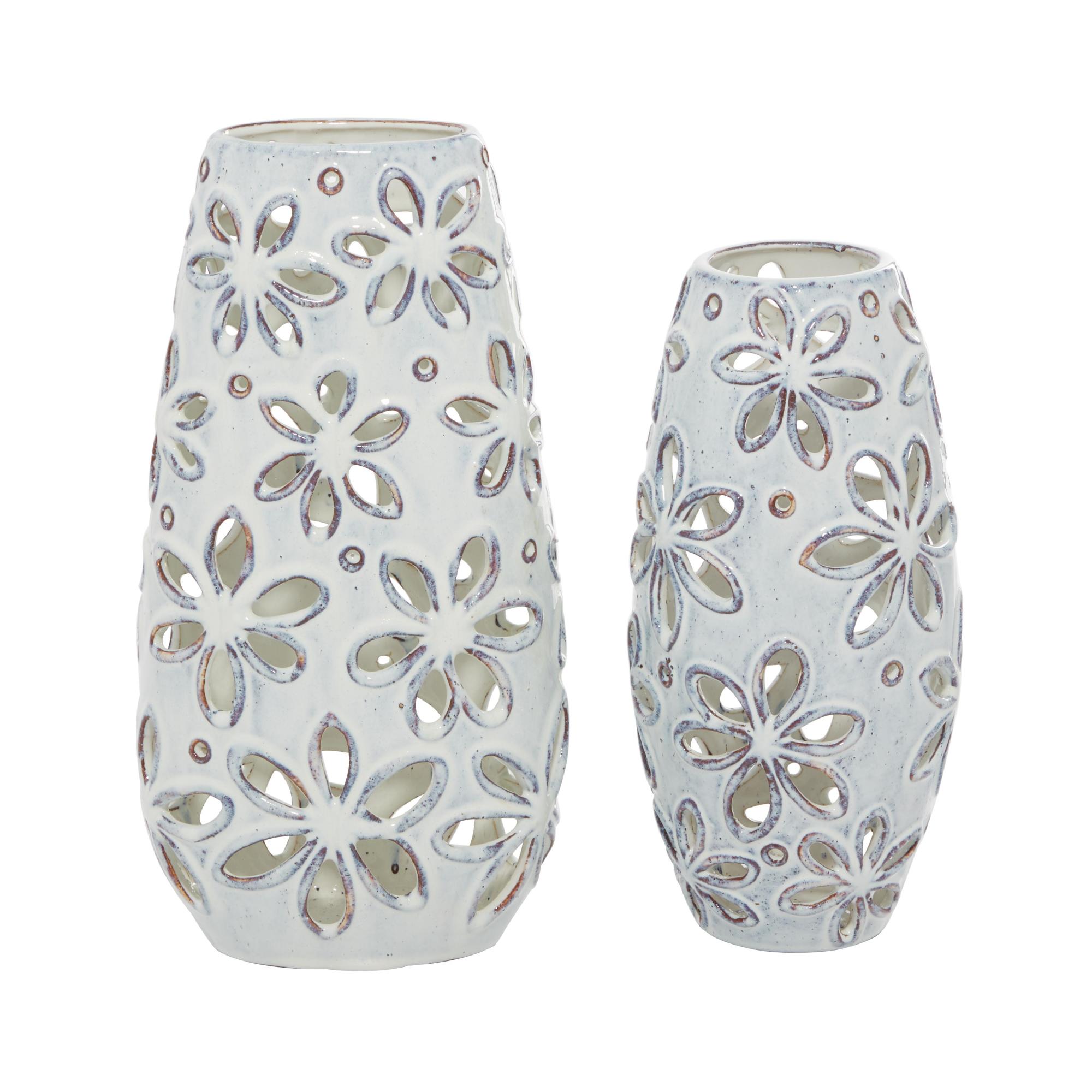 Set of 2 Floral White Ceramic Handmade Daisy Cut Out Decorative Vase