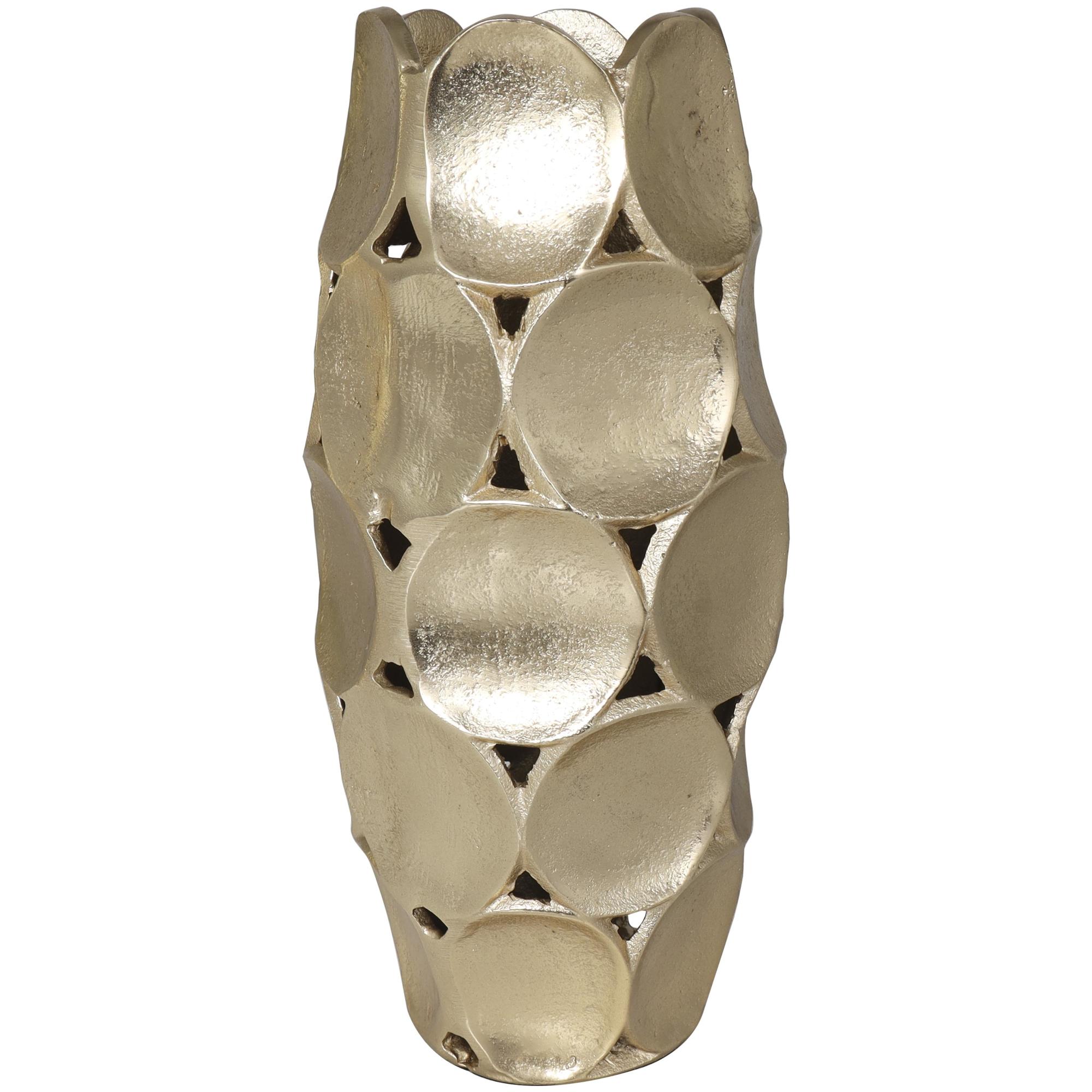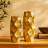 Ideal for living rooms or dining tables, the set of 2 centerpiece vases can display dried flowers. Designed with felt or rubber stoppers at the base that prevent scratching furniture and table tops, as well as sliding around. This item ships in 1 carton. Aluminum vase makes a great gift for any occasion. Suitable for indoor use only. This item ships fully assembled in one piece. Made in India. This aluminum vase comes as a set of 2. Contemporary style. Vases have 3.20 in, and 3 in mouth openings.
