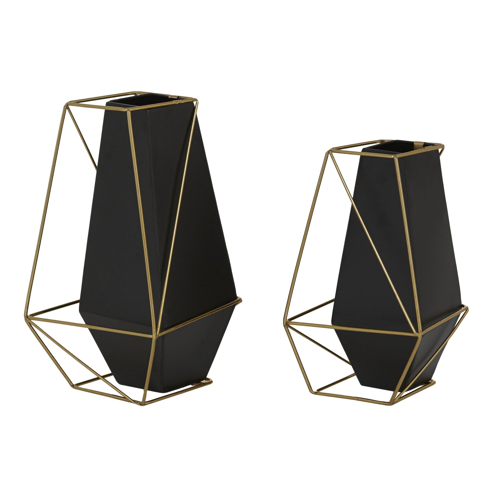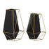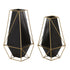 Set of 2 Geometric Black Metal Decorative Vase with Gold Wire Accents