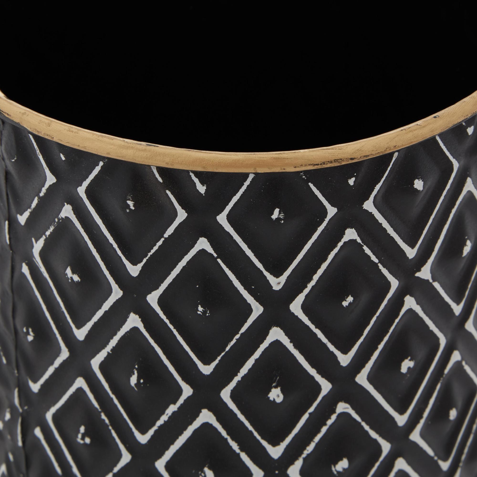 •The iron set of 2 decorative jars features unique geometric painted patterns that add a touch of sophistication to any room