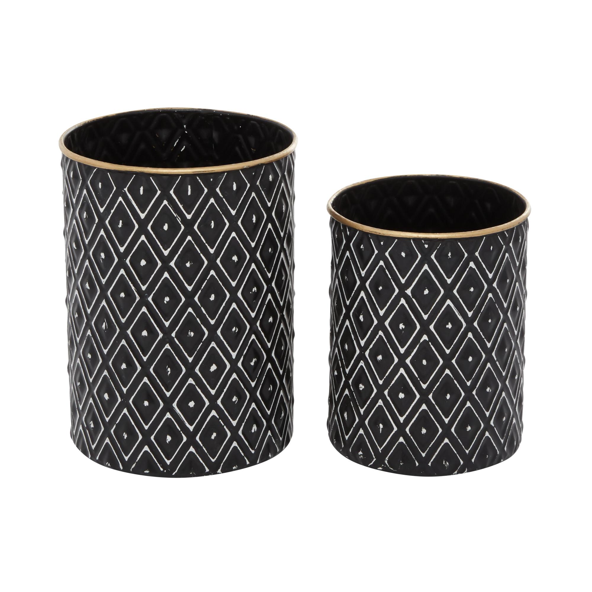 Set of 2 Geometric Black Metal Living Room Decorative Jars with Wood Lids