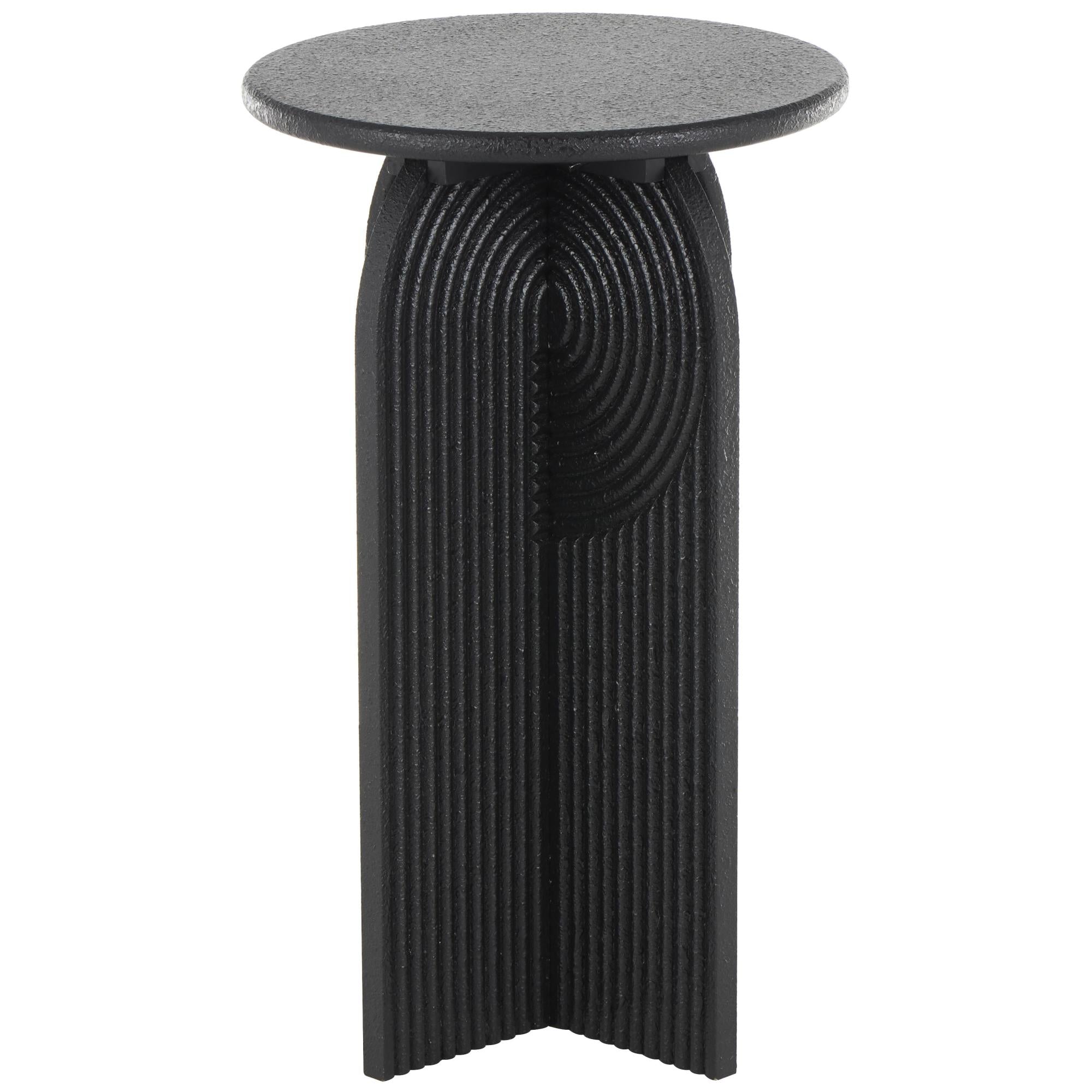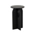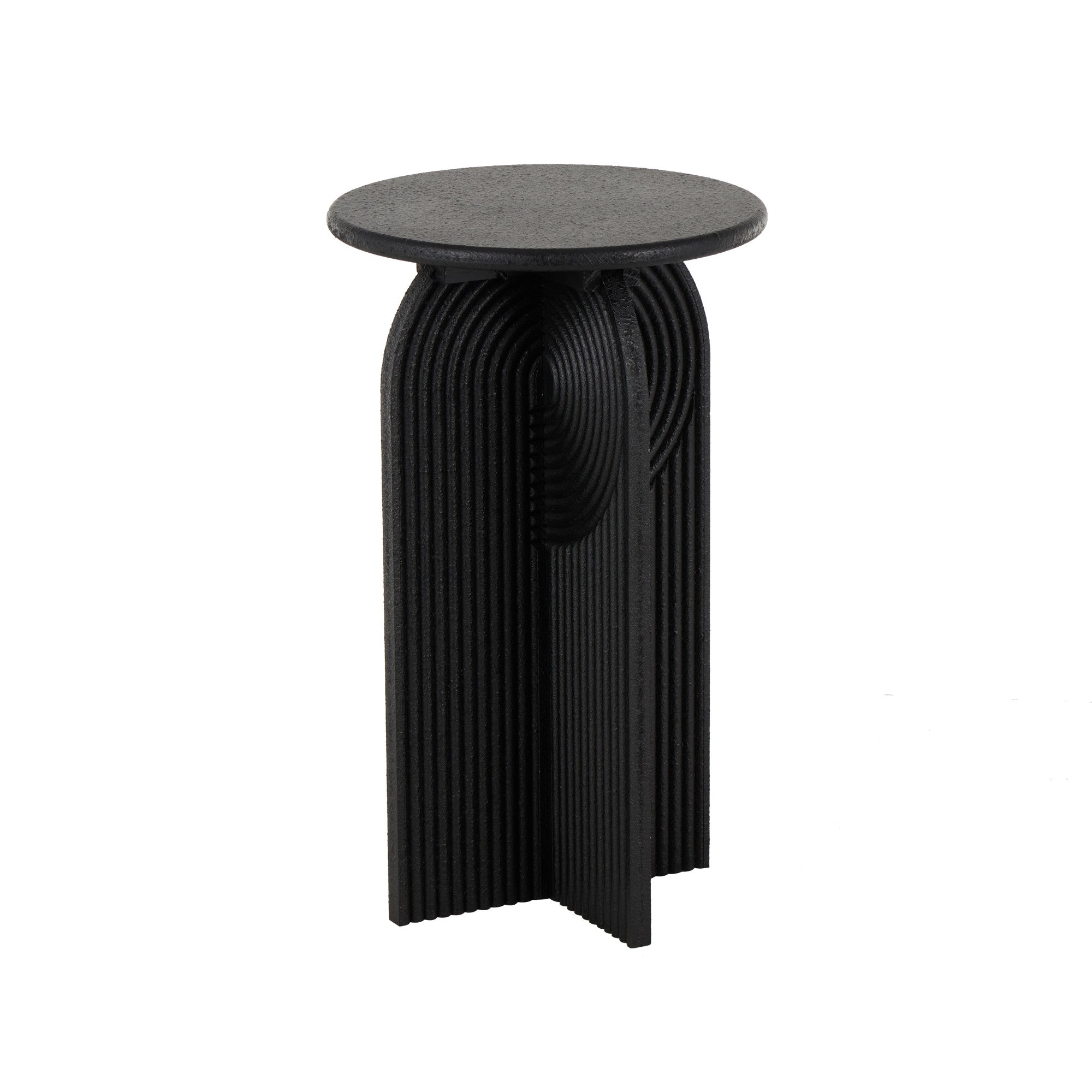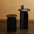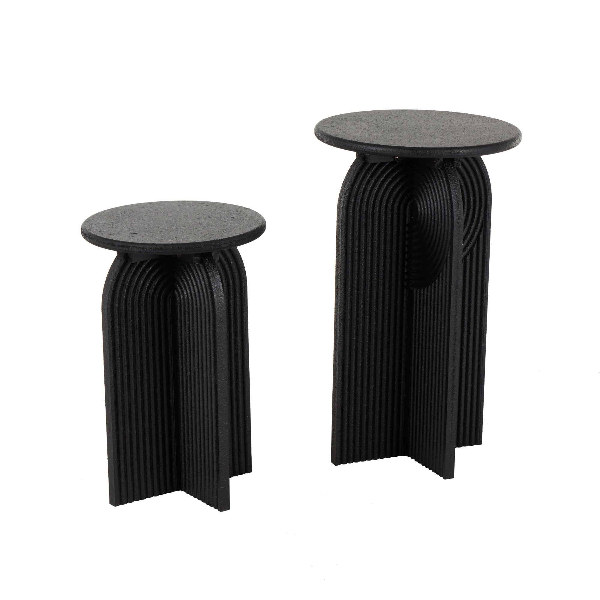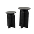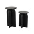 Set of 2 Geometric Black Wood Sandstone Carved Art Deco Arched Pedestal Side End Accent Table