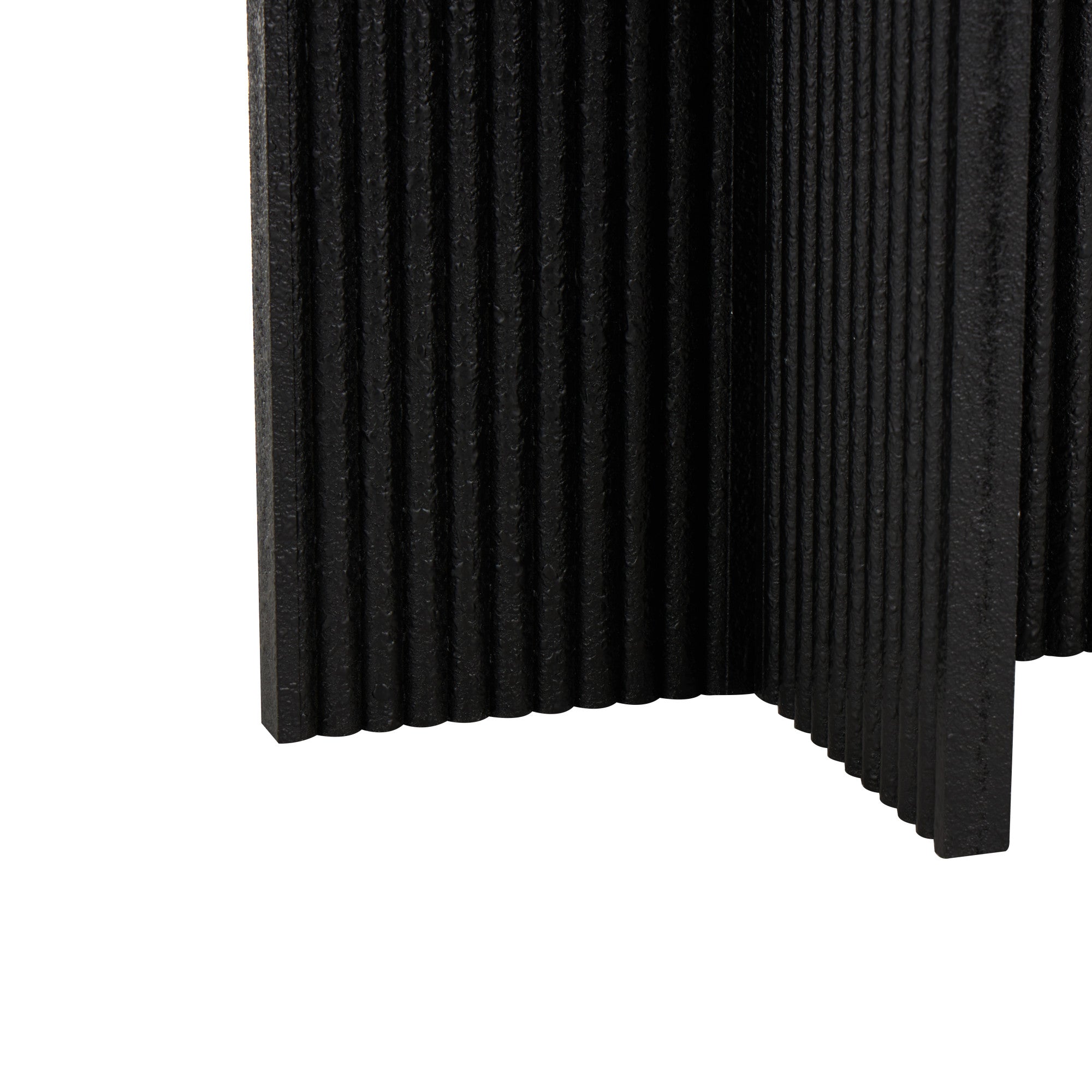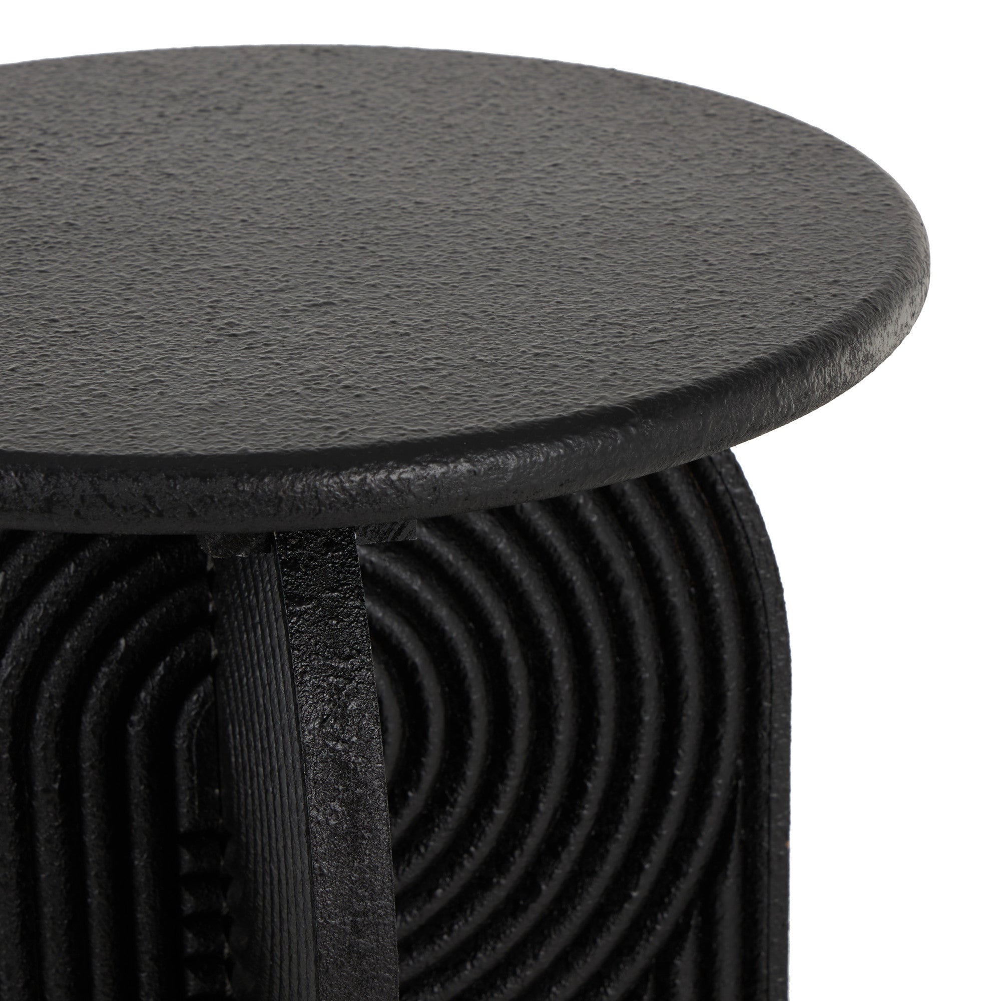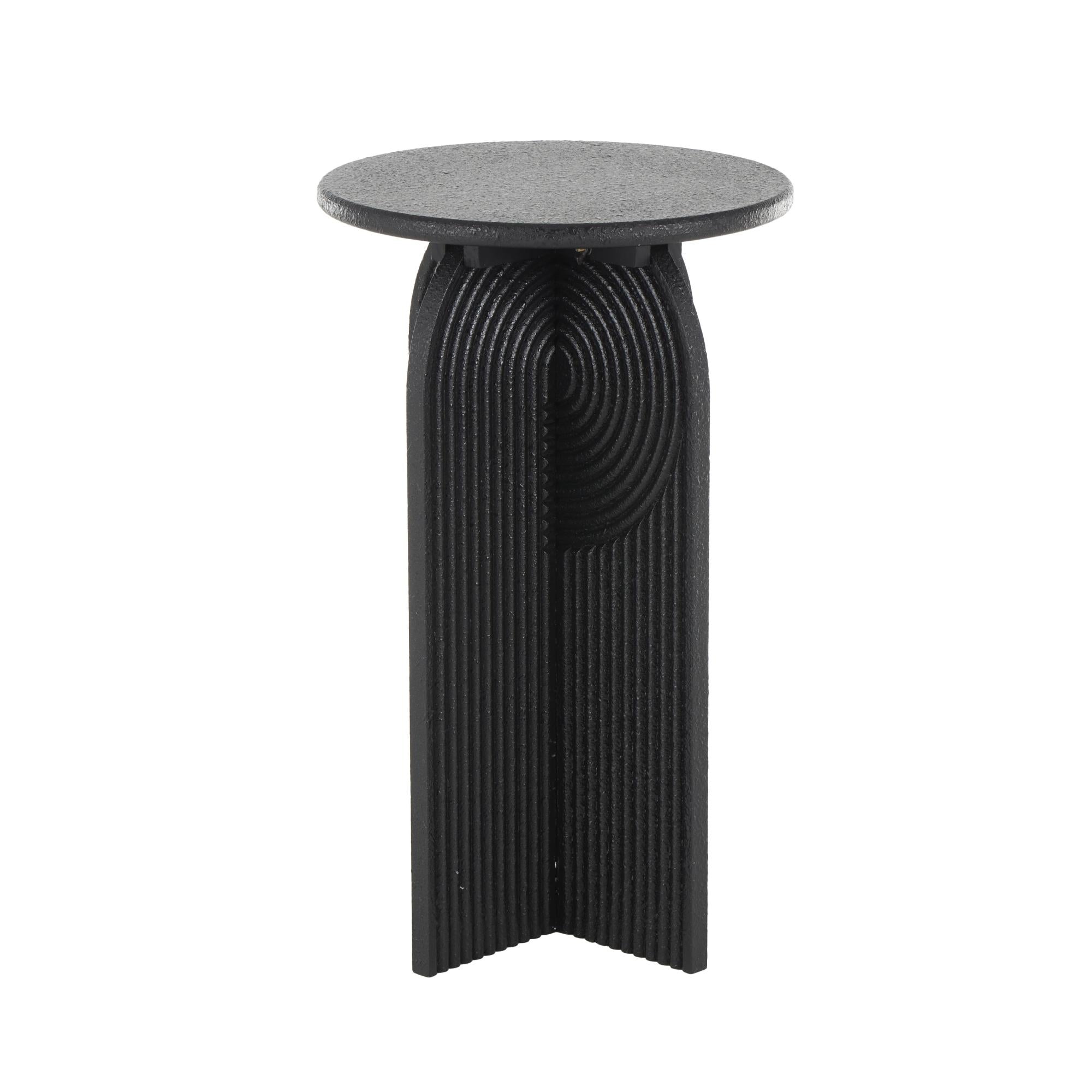 Set of 2 Geometric Black Wood Sandstone Carved Art Deco Arched Pedestal Side End Accent Table