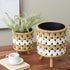 Ideal as stylish decor items, this geometric set of 2 small planter pot can also be used to bring a touch of nature into your home. Designed with felt or rubber stoppers at the base that prevent scratching furniture and table tops, as well as sliding around. This item ships in 1 carton. Please note that this item is for decorative purposes only and is not food safe. Due to the handmade nature of this item, no two will be alike, there will be slight differences in shape, size, and color. Suitable for indoor use only. This item ships fully assembled in one piece. Maximum weight limit is 15 lbs. Planters have no drainage holes. This jute plant pot comes as a set of 2. Farmhouse style.
