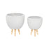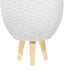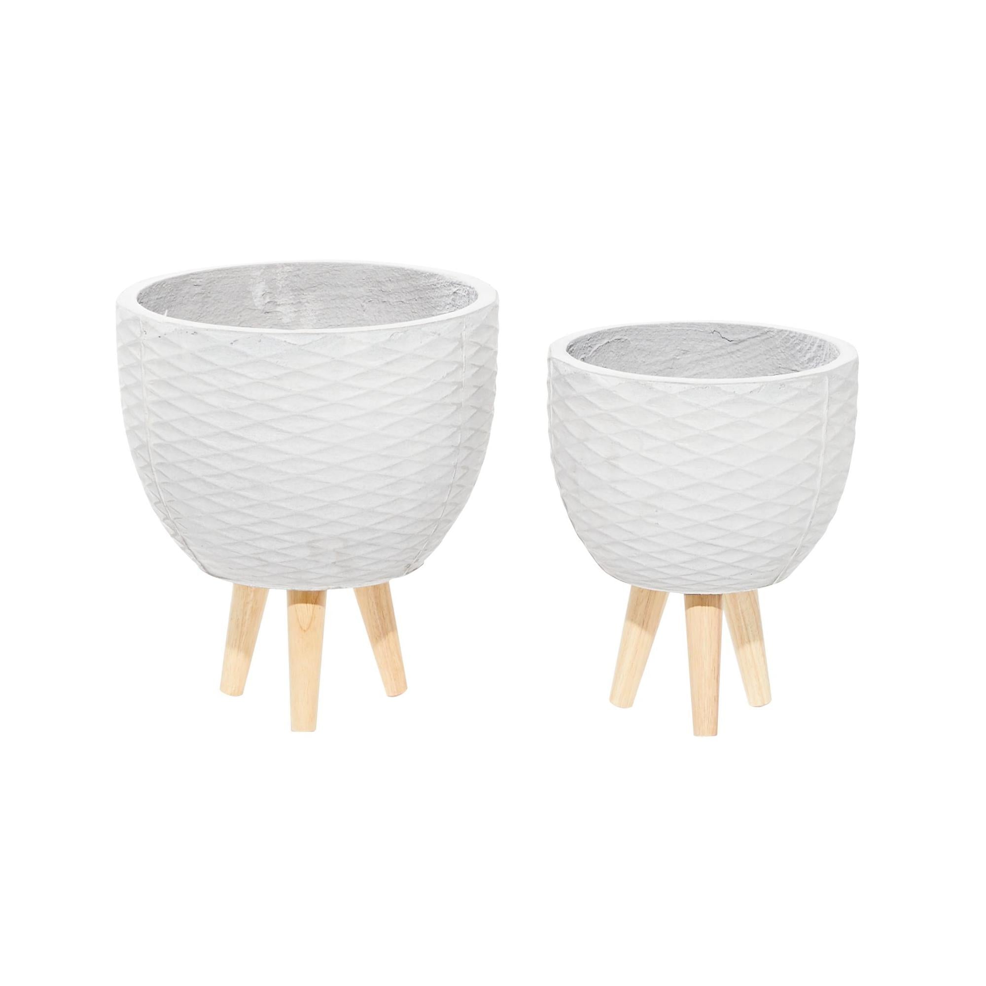 Set of 2 Geometric Ceramic Diamond Patterned Indoor Outdoor Planter with Wood Tripod Legs