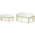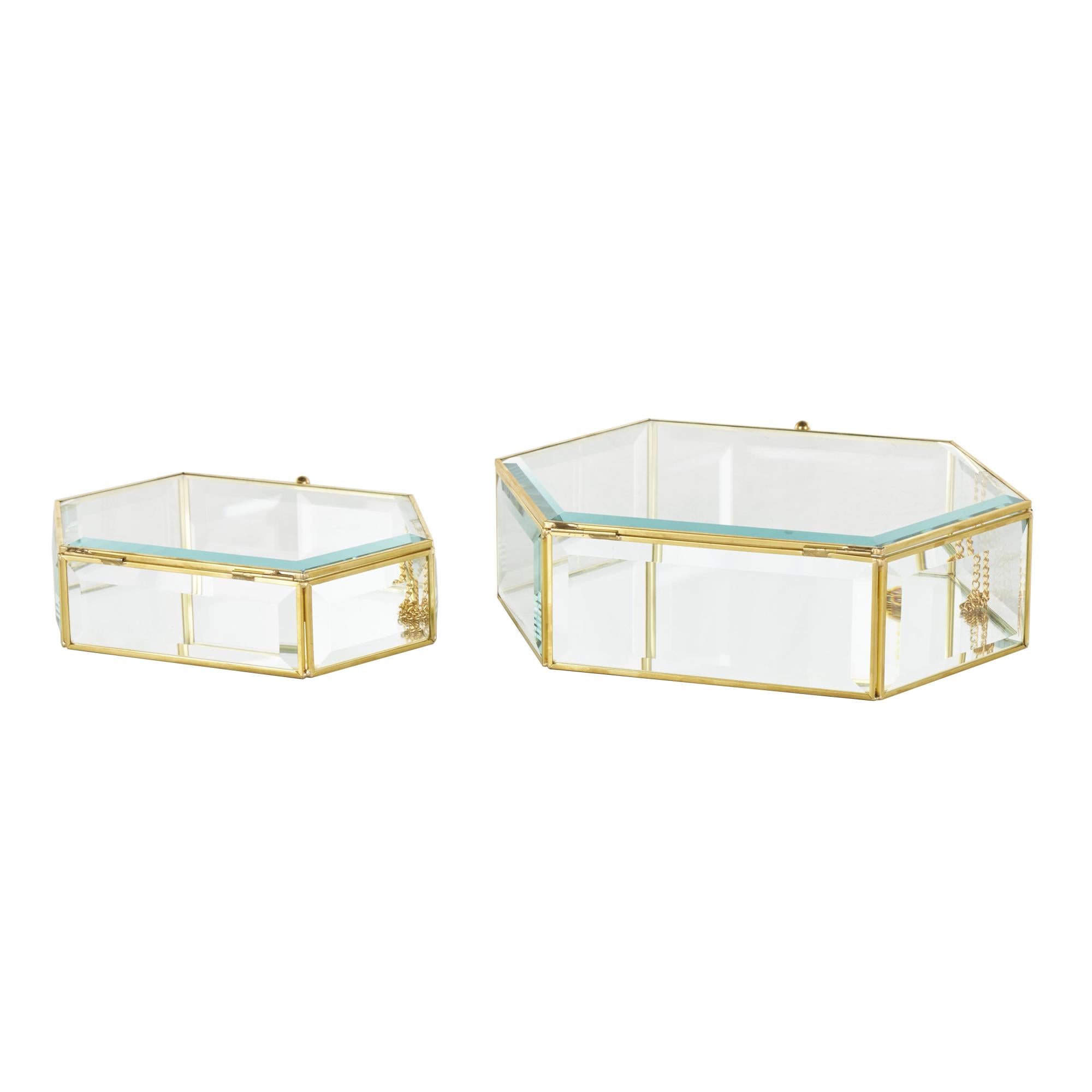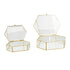 Set of 2 Geometric Clear Glass Beveled Hexagon Decorative Jewelry Box with Gold Metal Frame and Chain Accent