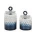 Set of 2 Geometric Dark Blue Glass Faceted Ombre Living Room Decorative Jars with Diamond Knobs