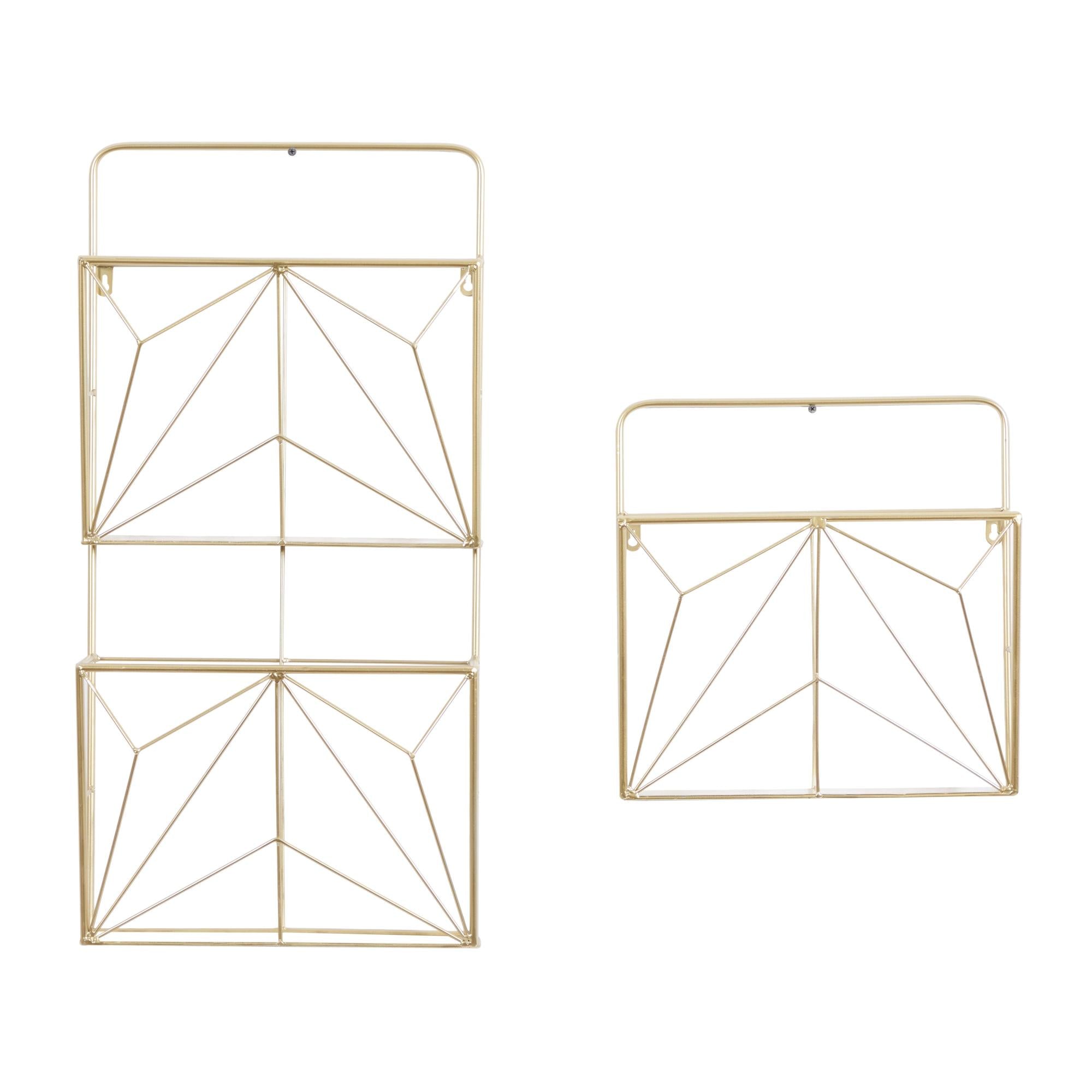 Set of 2 Geometric Gold Metal 3 Slot Room Wall Shelf