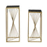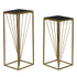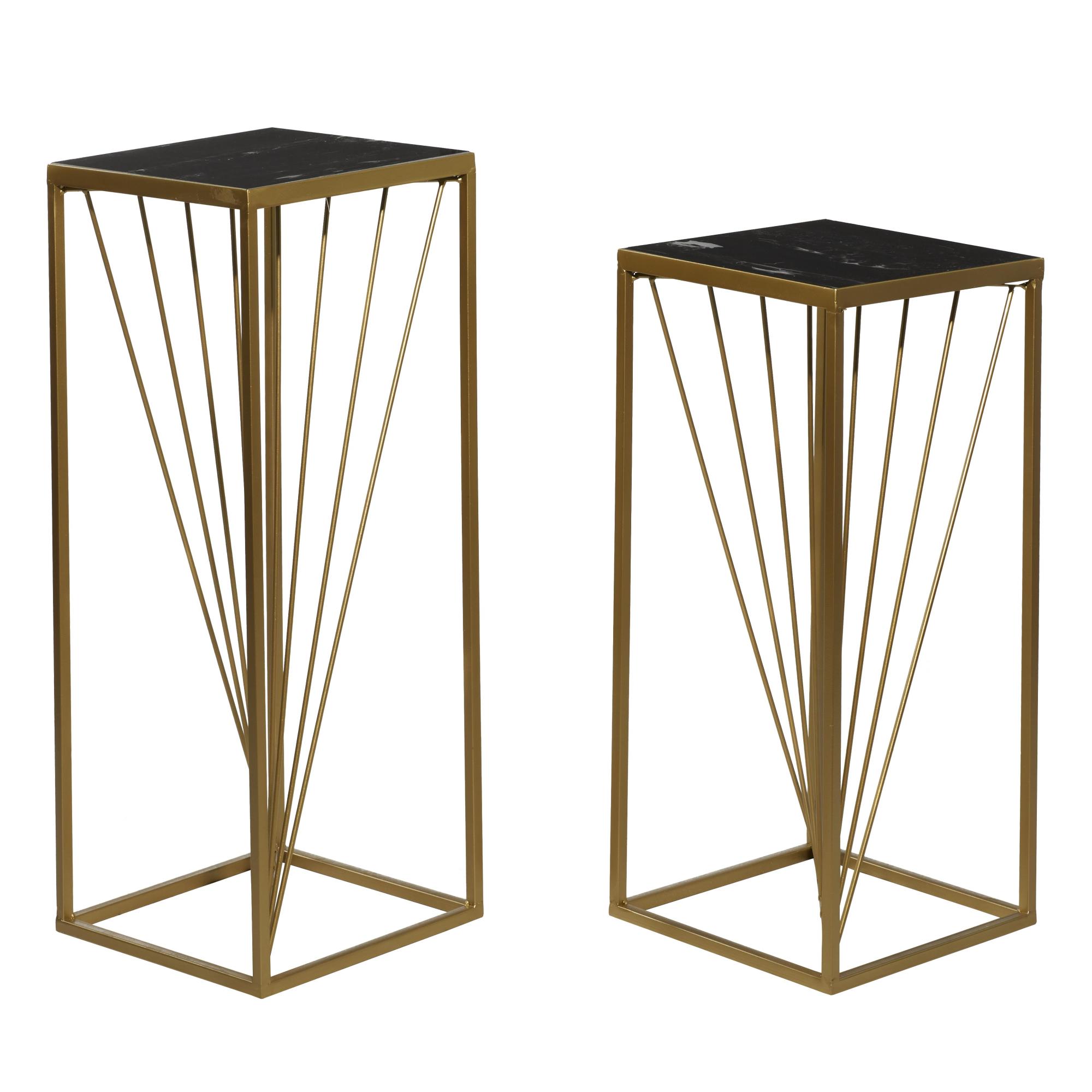 Set of 2 Geometric Gold Metal Side End Pedestal Table with Black Marble Top
