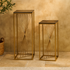 •This iron set of 2 pedestal tables can accommodate large planters with its square tops and tall rectangular frames