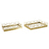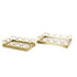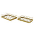 Set of 2 Geometric Gold Stainless Steel Metal Mirrored Living Room Decor Tray with Wire Rod Frame