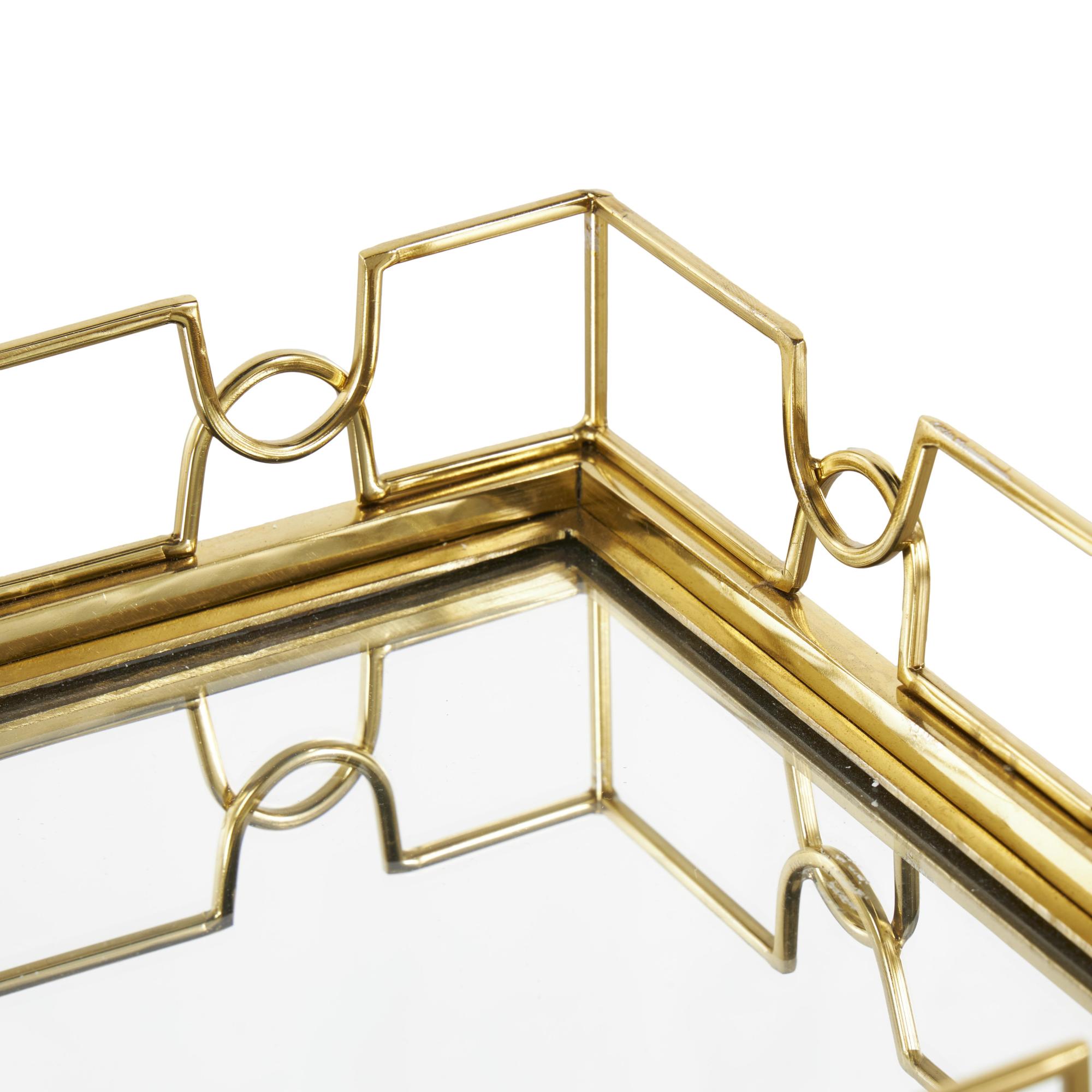 •The glam set of 2 multi-purpose trays is meticulously crafted, with the welded wire frame providing sturdy support for the mirrored glass interior that reflects light beautifully