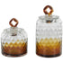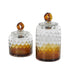 Set of 2 Geometric Orange Glass Faceted Ombre Living Room Decorative Jars with Diamond Knobs